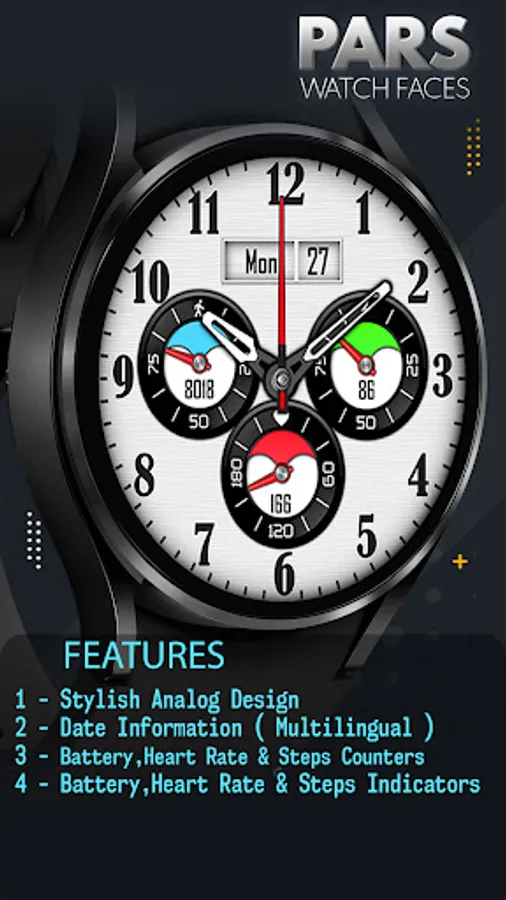 The perfect looks and easy to read Analog watch face, by Pars for Wear OS.