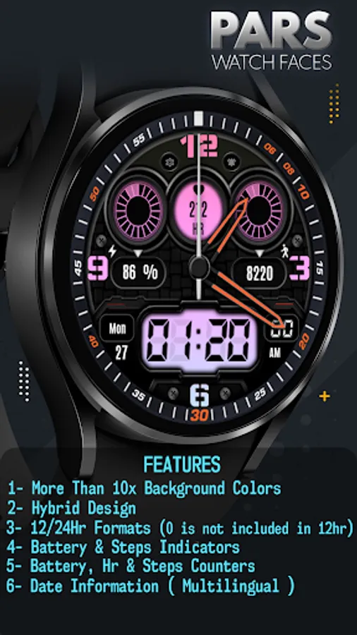 The perfect looks and easy to read Hybrid watch face, by Pars for Wear OS.