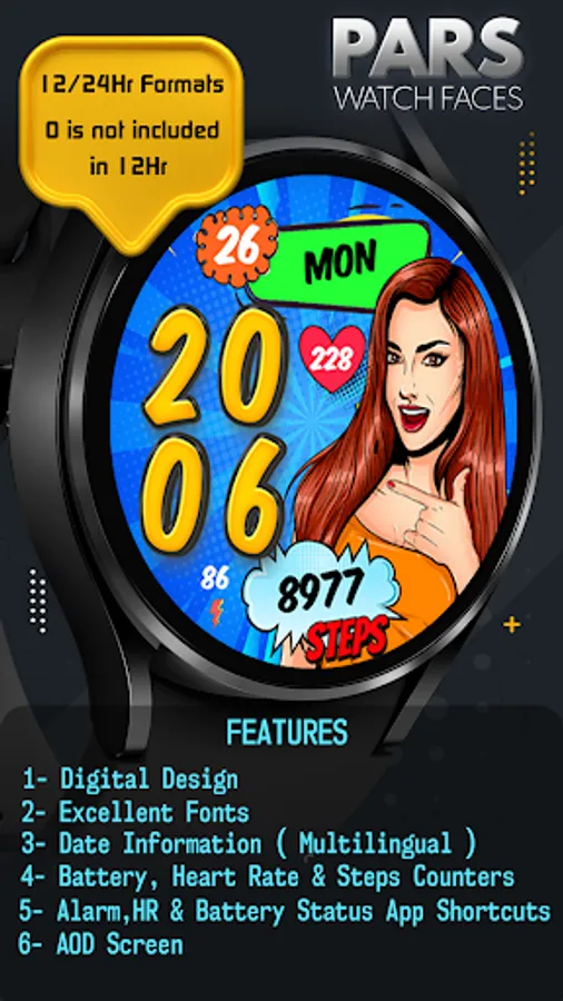 The perfect looks and easy to read Digital watch face, by Pars for Wear OS.