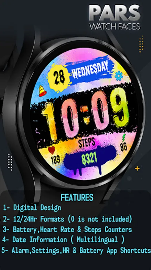 The perfect looks and easy to read Digital watch face, by Pars for Wear OS.
