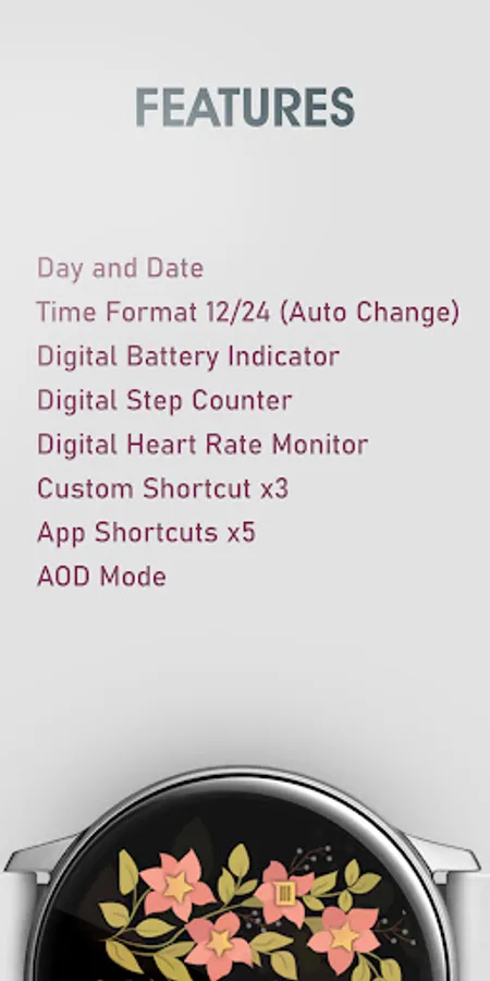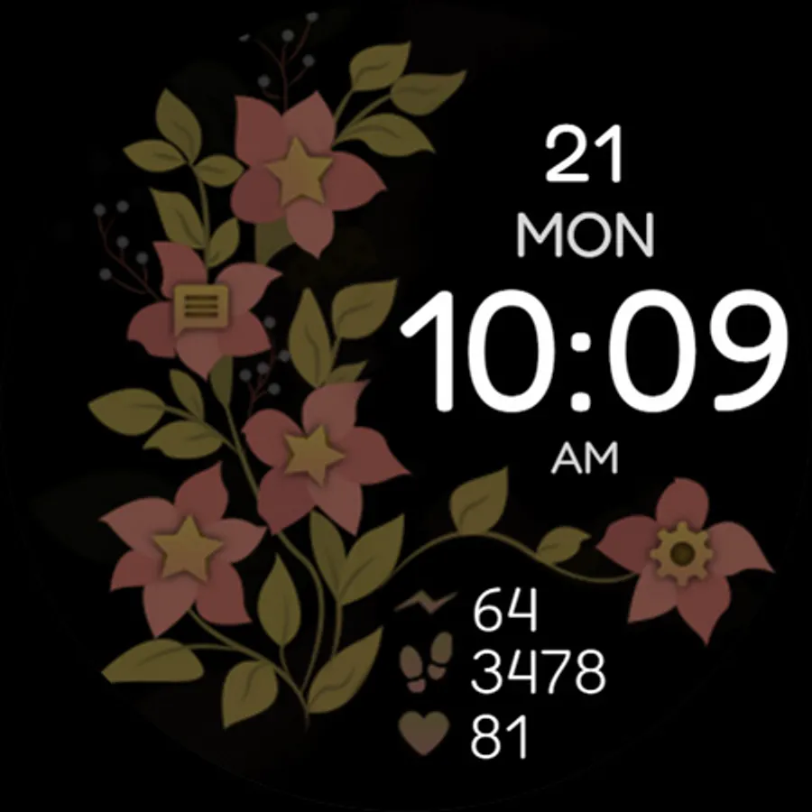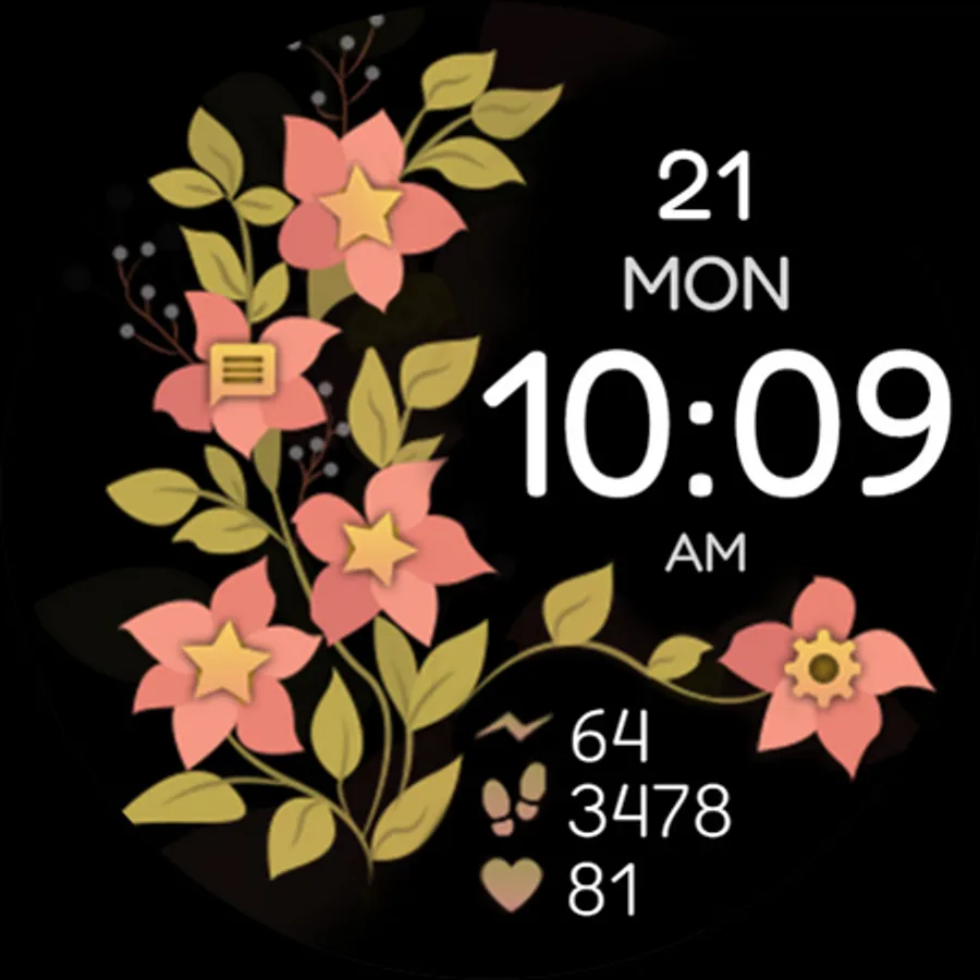 Rose Flower Feminine Digital Watch Face for Wear OS