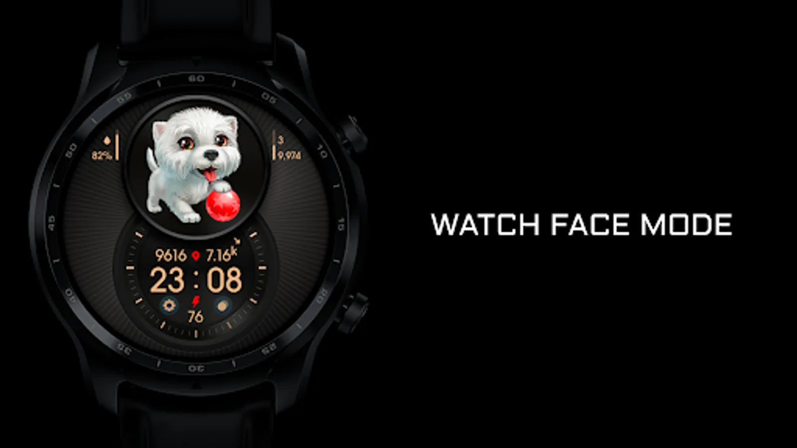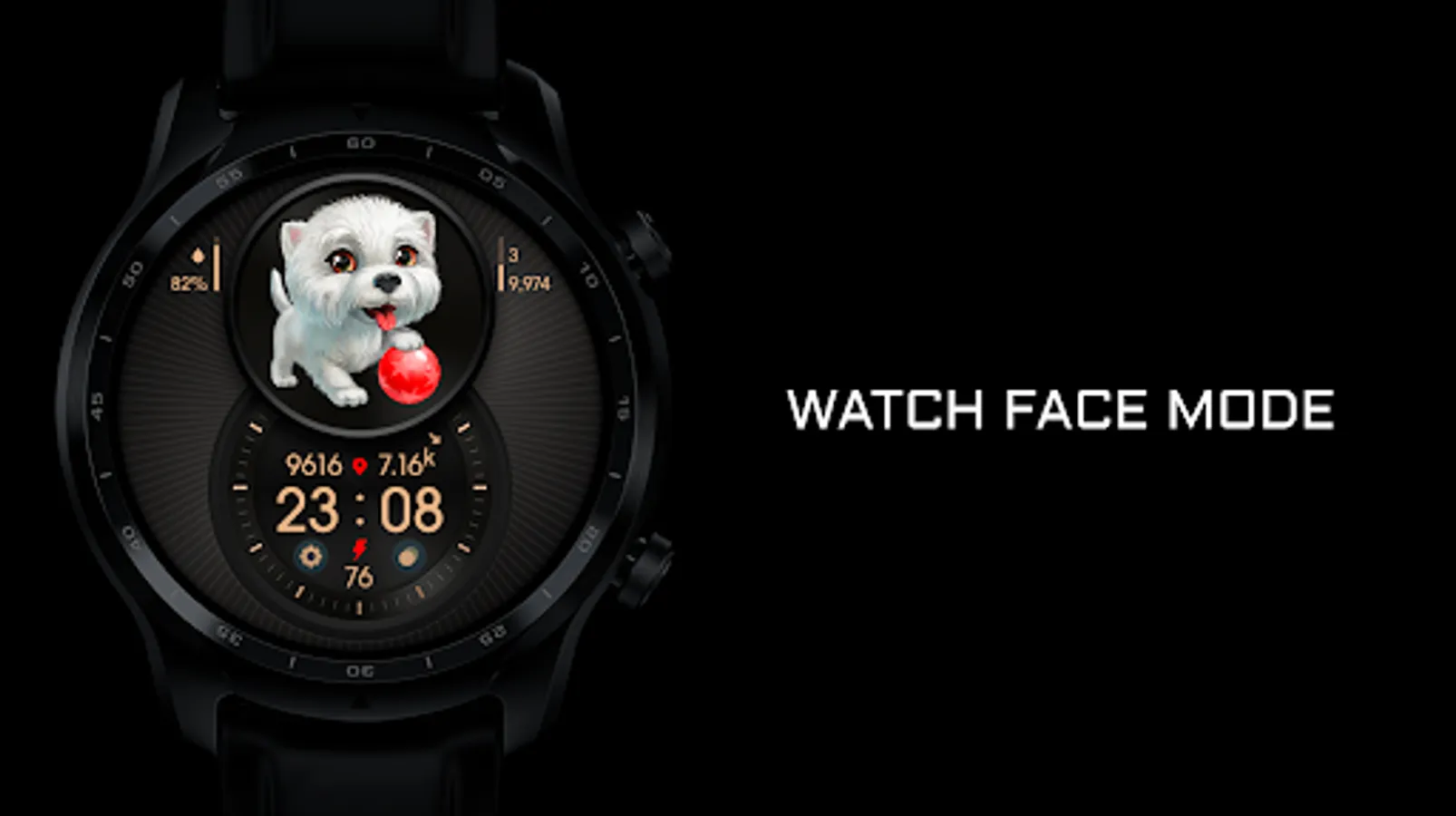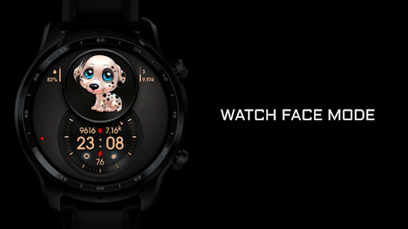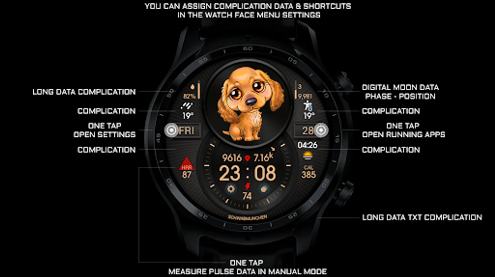 Digital informative watch face with cute puppies.