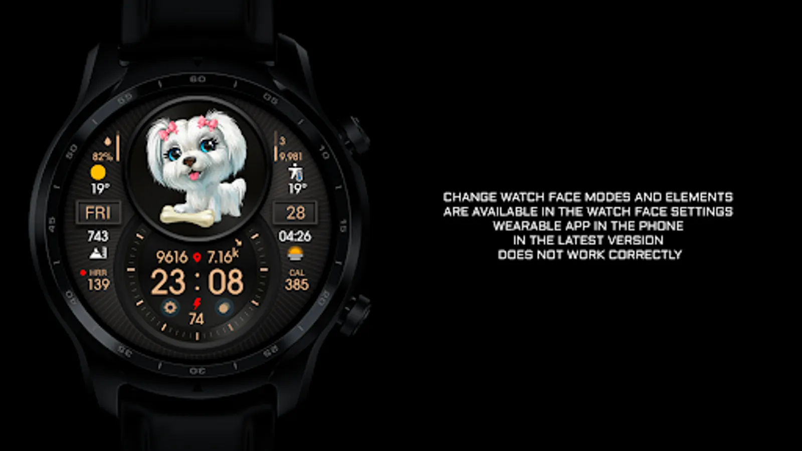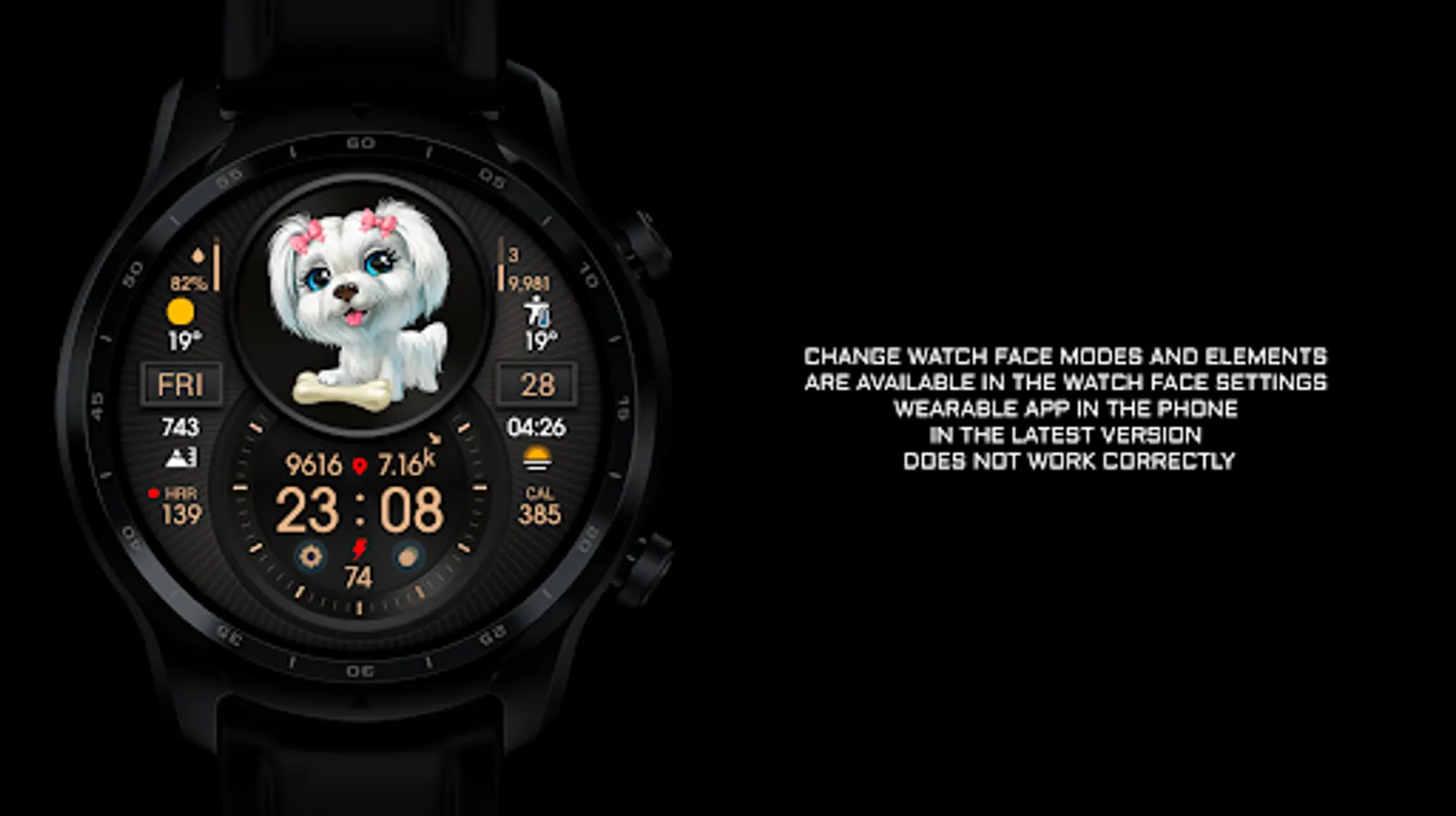 NOTE 3. All settings for the watch face are recommended to be performed in the watch !!! The Samsung Wearable app or other watch brand apps in phone sometimes does not work correctly with the watch face settings !!!