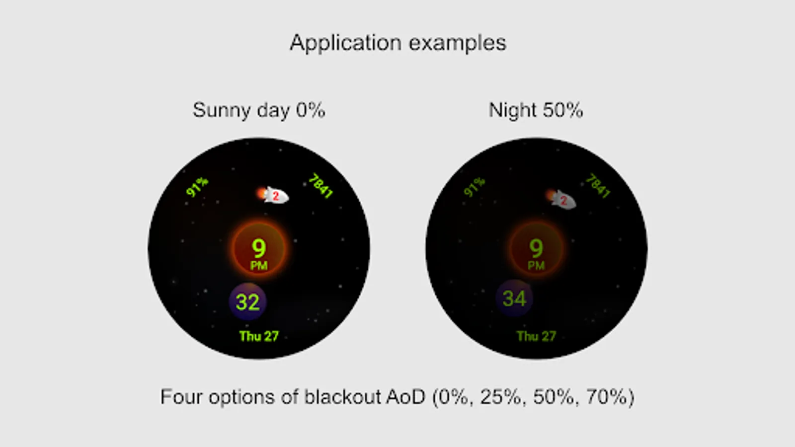 4 AoD blackout mode (0%, 25%, 50%, 70%)