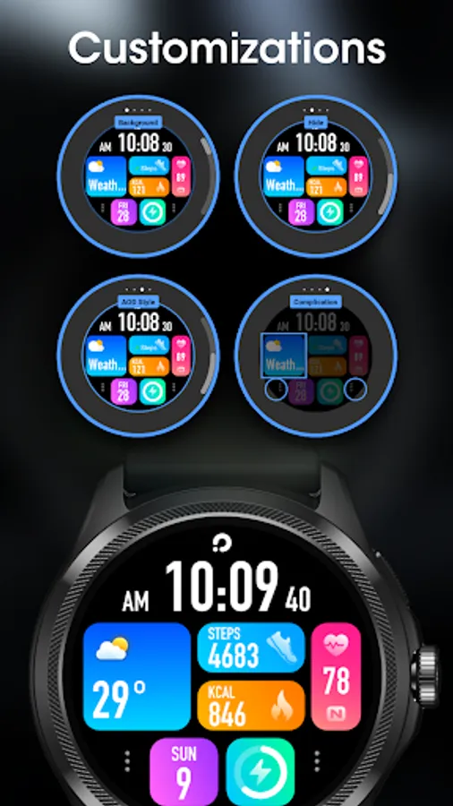 Press and hold the center of the watch > customize > choose a major complication and choose your weather complication provider.