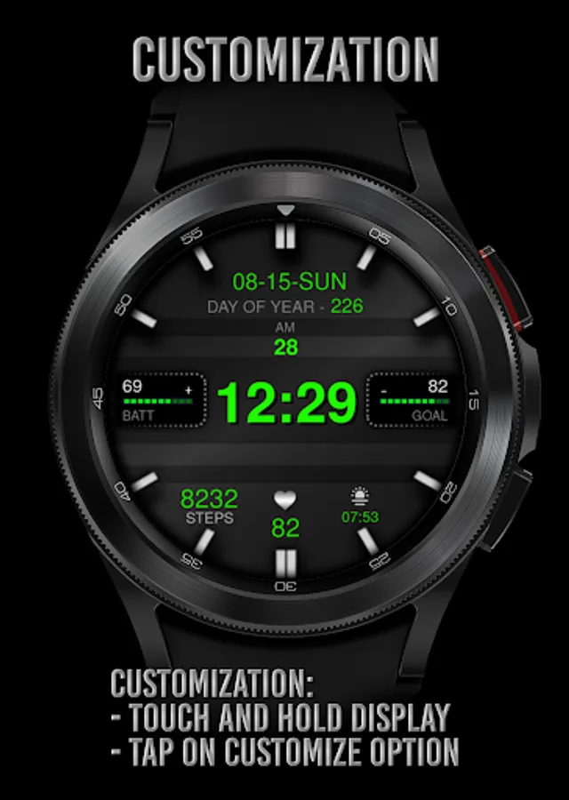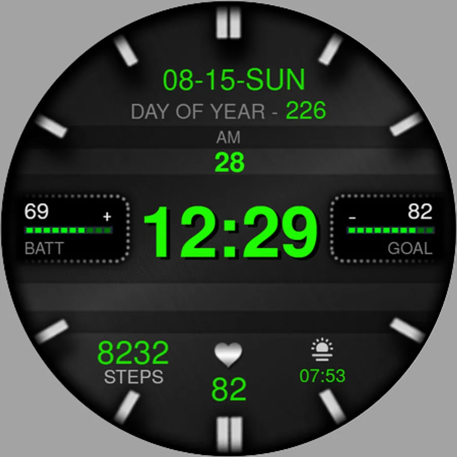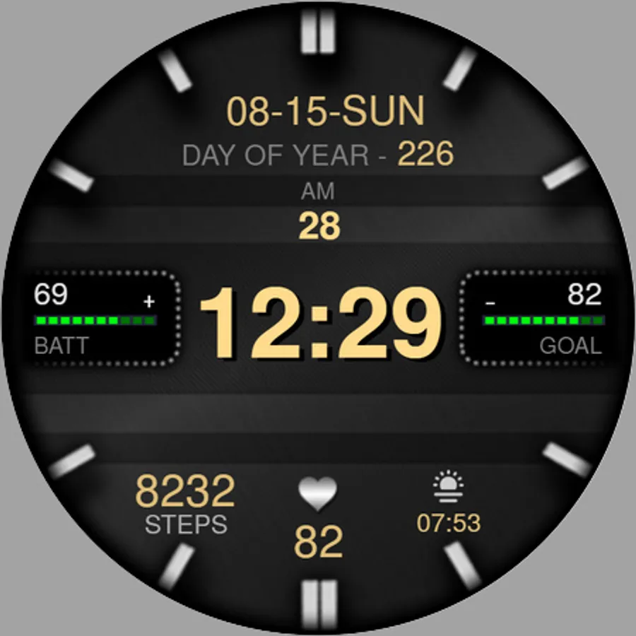 I would like to introduce you to a stylish watch face with a premium look and many setting options.