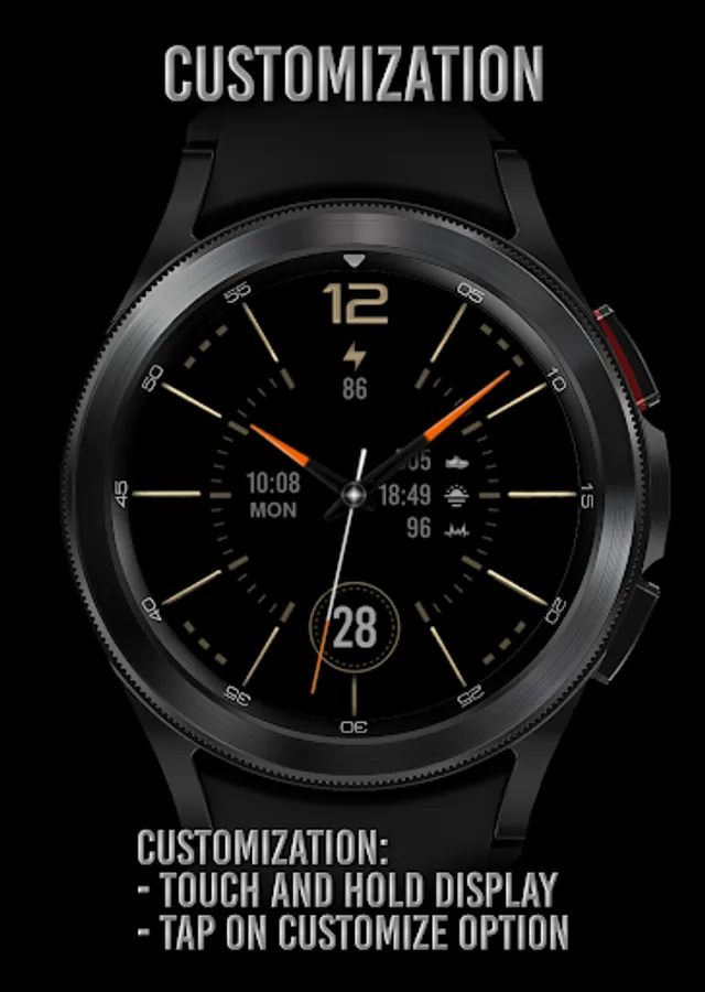 I would like to introduce you to a stylish watch face with a premium look and many setting options.