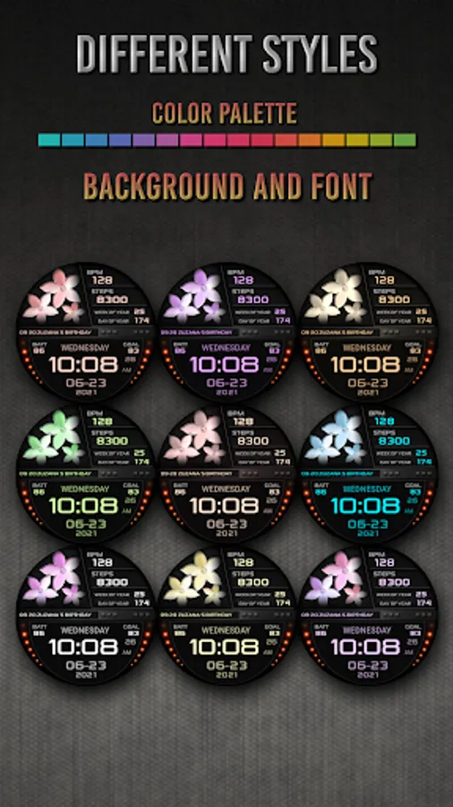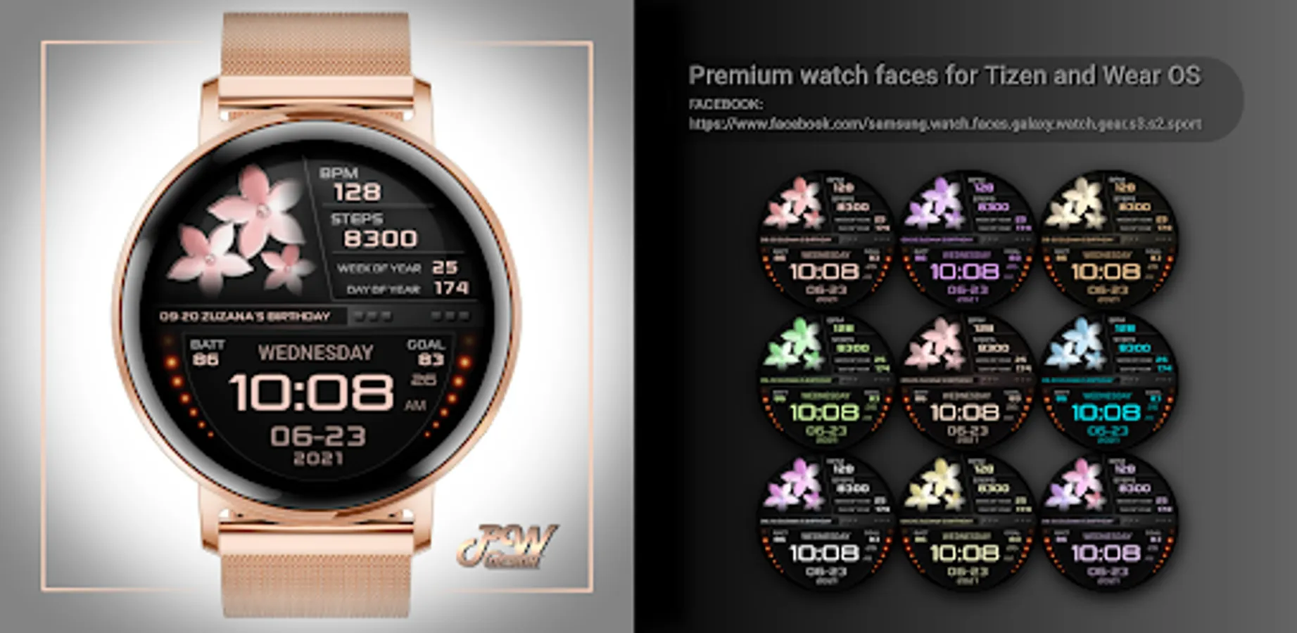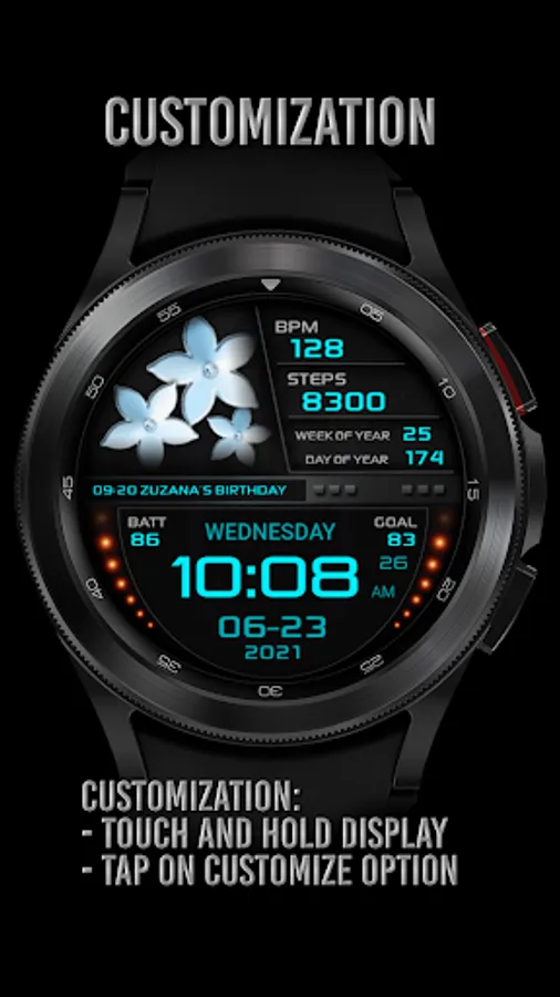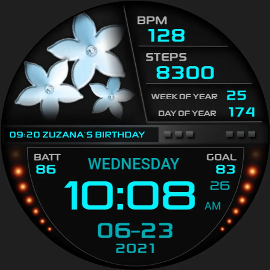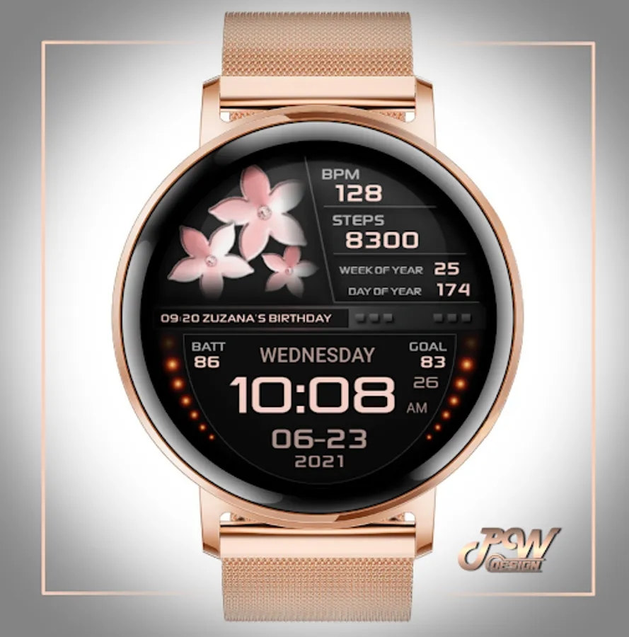 I would like to introduce you to a stylish watch face with a premium look and many setting options.