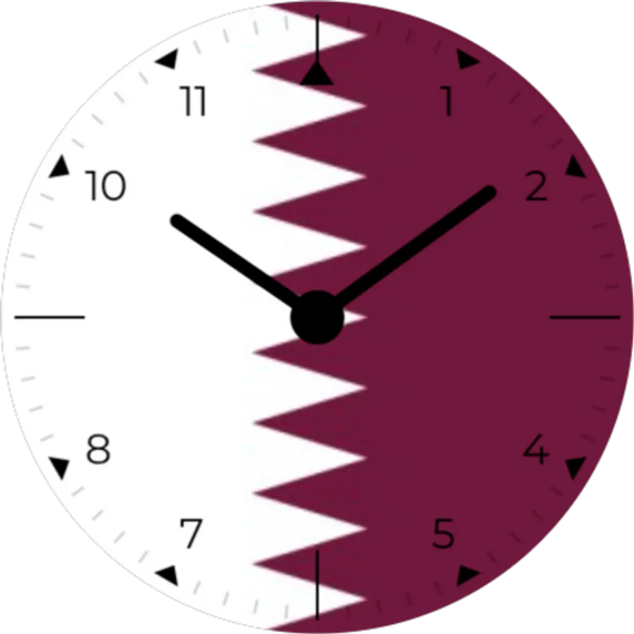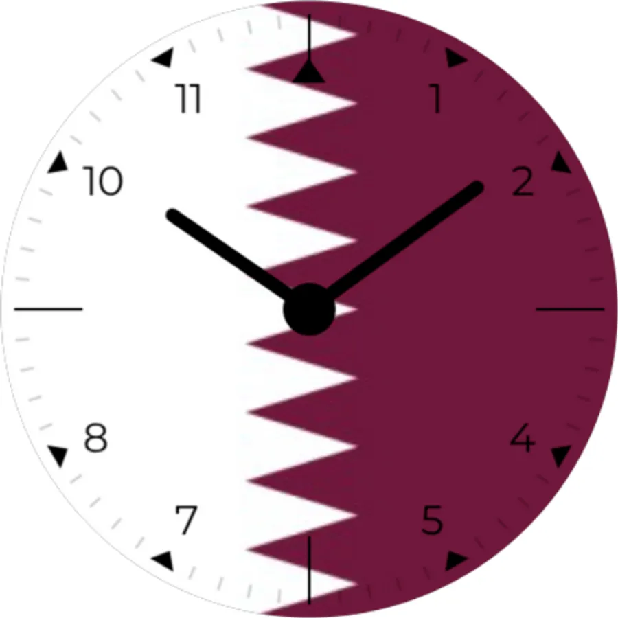 Analog watch face with Qatar flag in background. Show the pride in your nation with a sleek, modern watch face with your countries national flag. Always on display simple white on black for longer battery life.