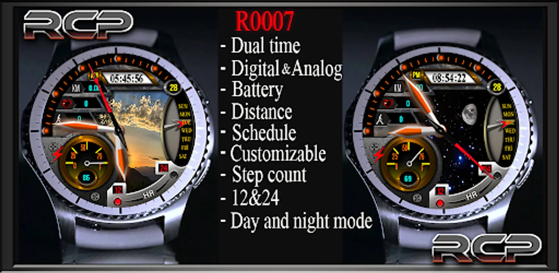 RCP0007 is RCP Design's digital and analog watch Face for Wear operating system.