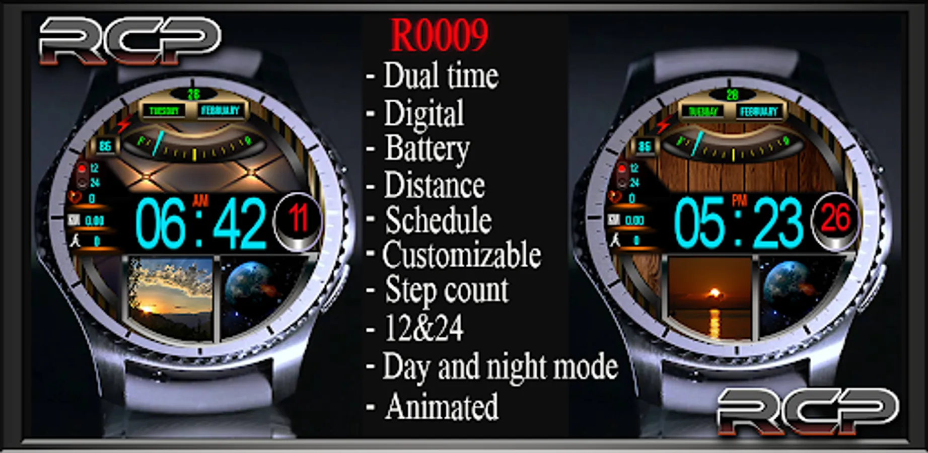 RCPR0009 is RCP Design's digital and analog watch Face for Wear operating system.