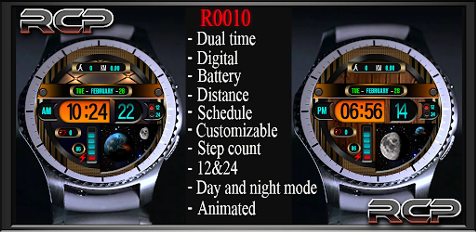 RCPR0010 is RCP Design's digital and analog watch Face for Wear operating system.