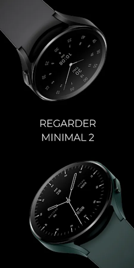 Introducing Regarder Minimal 2 - the sleek and minimalist watch face for your Wear OS smartwatch. Designed with simplicity in mind, this watch face features a clean and uncluttered display, with a focus on readability and elegance.