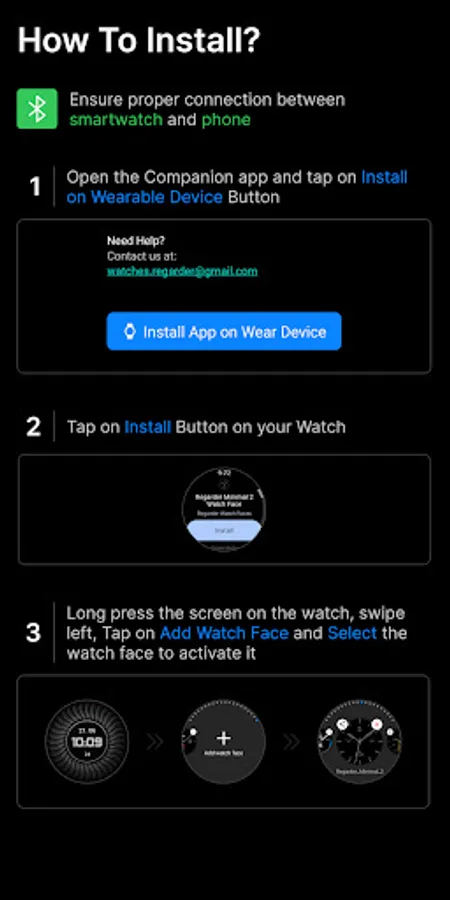 2 - If you are having synchronization problems between your phone and Play Store, install the app directly from your watch: search "Regarder Minimal 70" from Play Store on your watch and hit on install button.