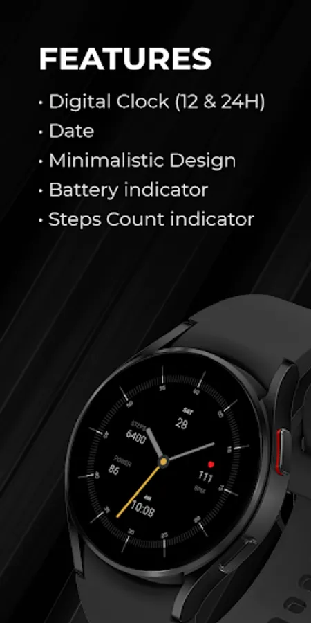 Embrace simplicity with a clean and modern display. Get a sleek minimalist look with our watch face app for your Wear OS Smartwatch