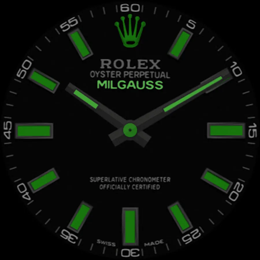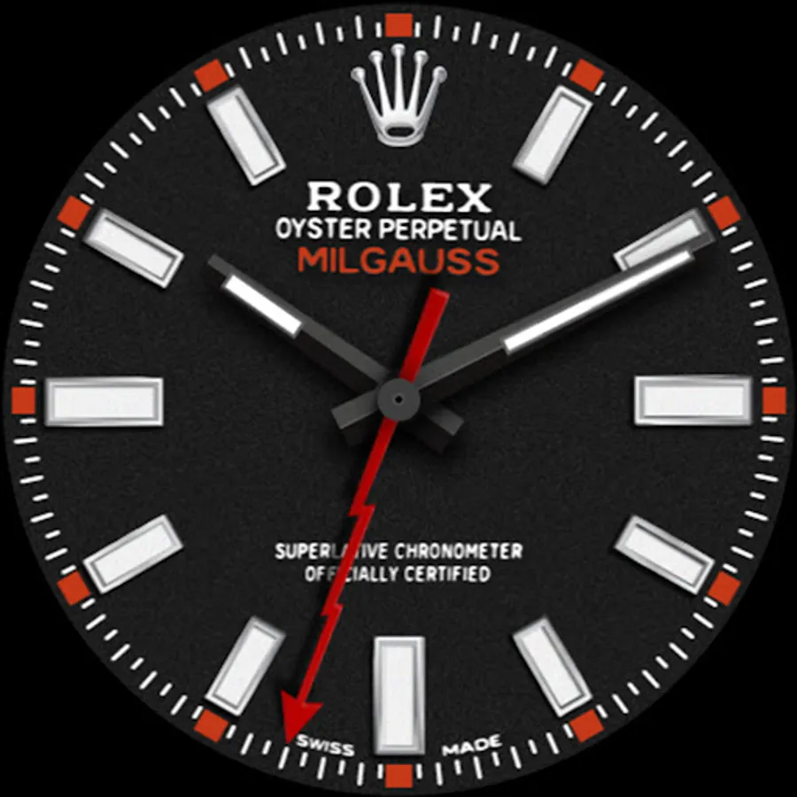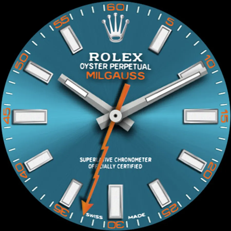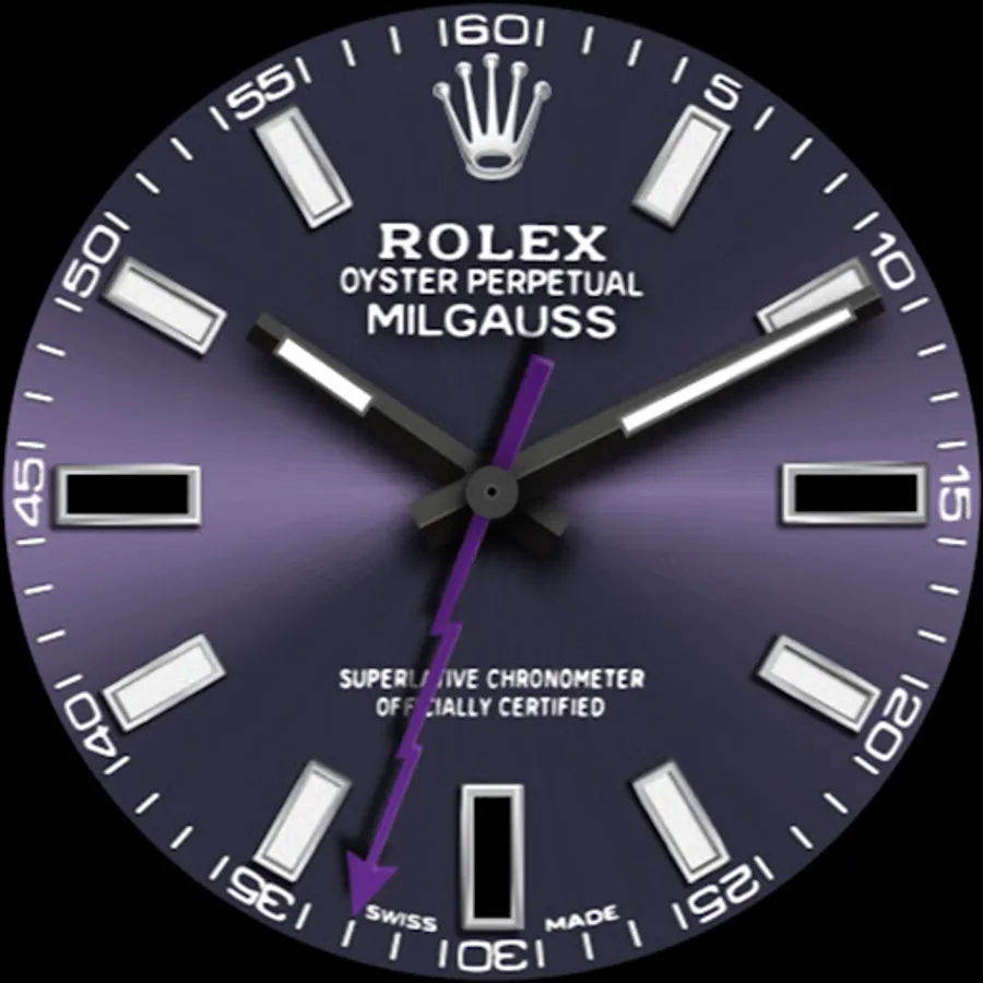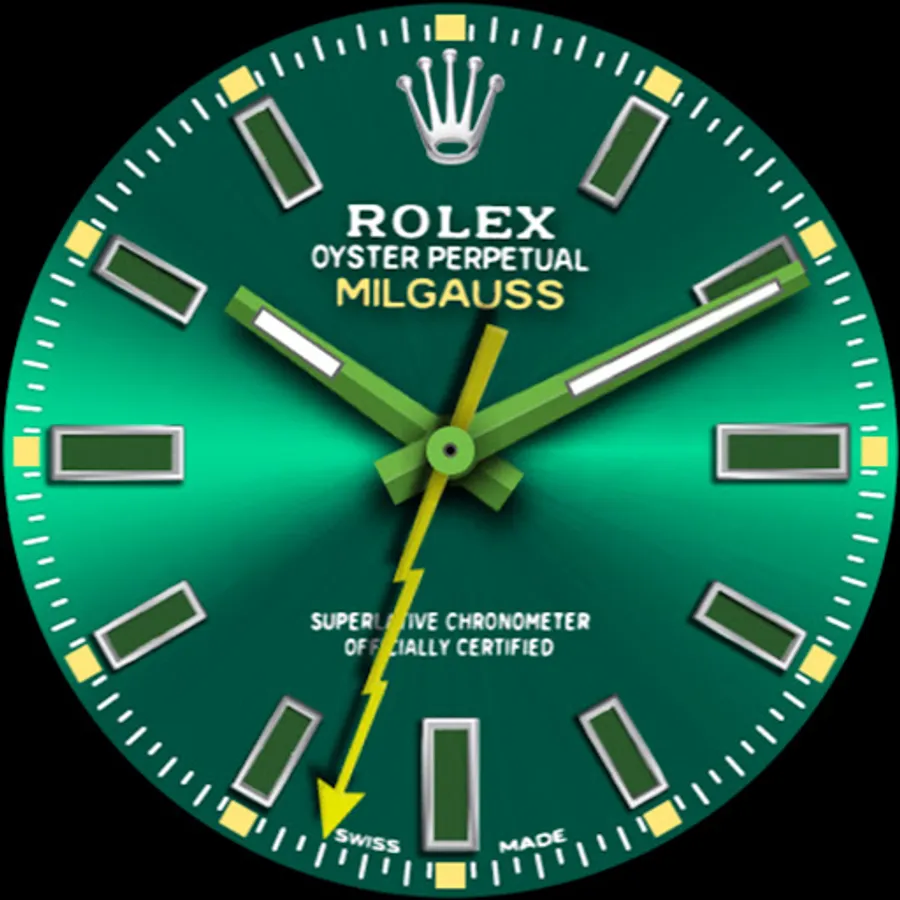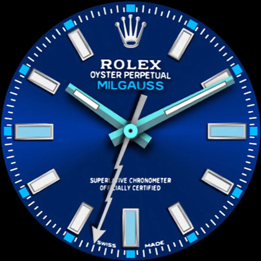 This is a digital watch face that can be downloaded and installed for any Wear OS watch with Wear OS version 3.0 (API level 30) or higher. Indexes, hands and all it's components were created from scratch and are virtual replica of the rolex milgauss, this watch face is not an exact copy of the original timepiece. (not suitable for square/rectangular watches)