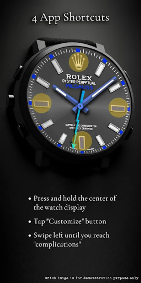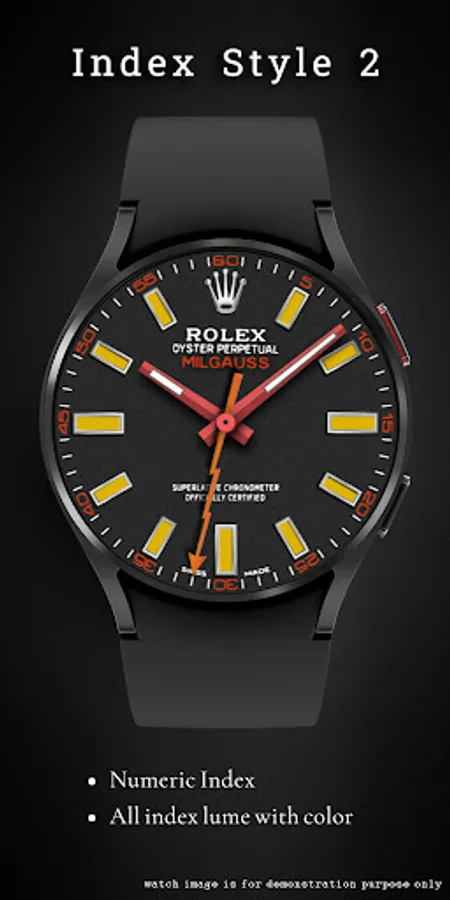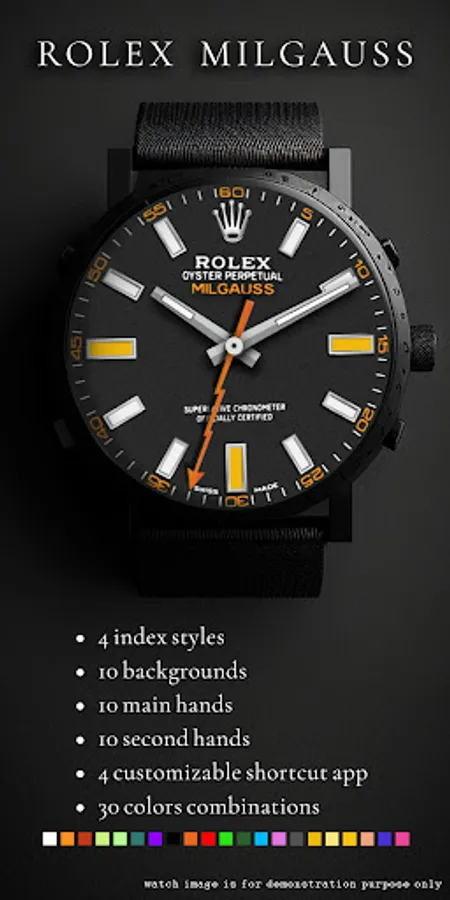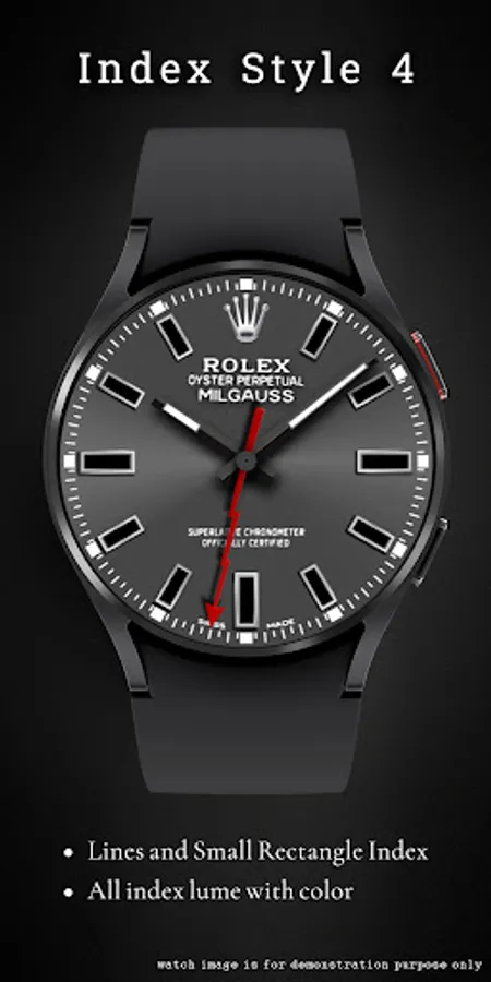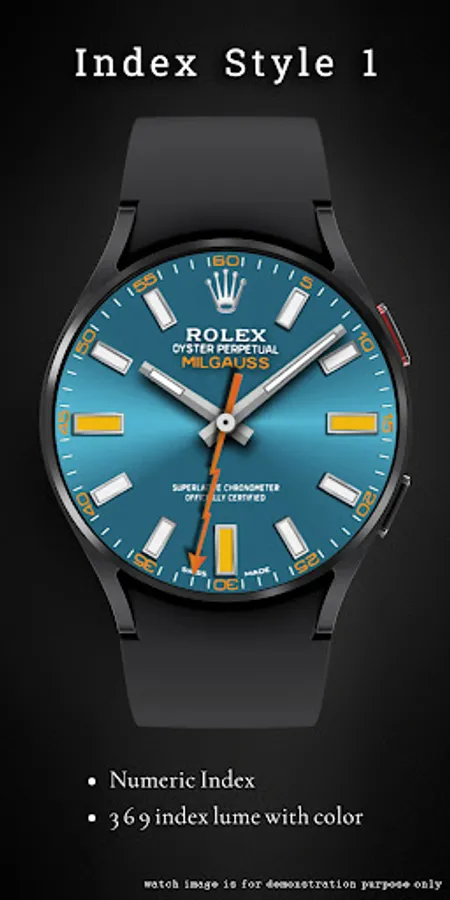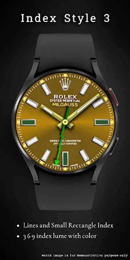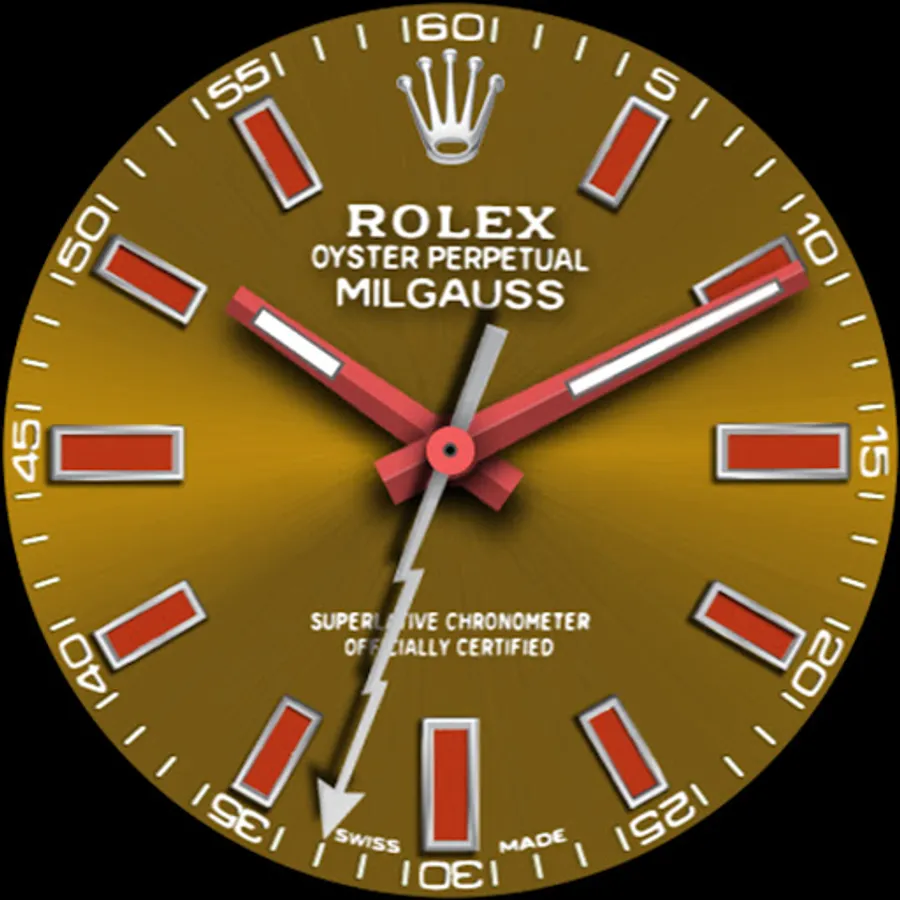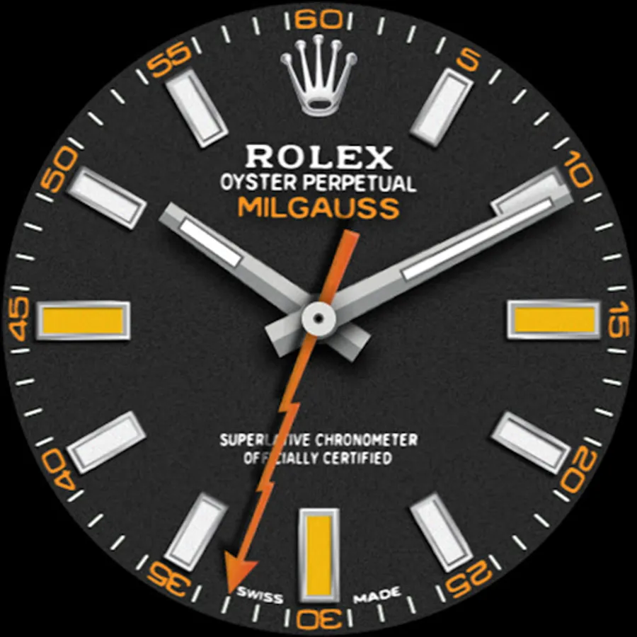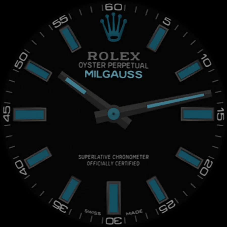 This is a digital watch face that can be downloaded and installed for any Wear OS watch with Wear OS version 3.0 (API level 30) or higher. Indexes, hands and all it's components were created from scratch and are virtual replica of the rolex milgauss, this watch face is not an exact copy of the original timepiece. (not suitable for square/rectangular watches)