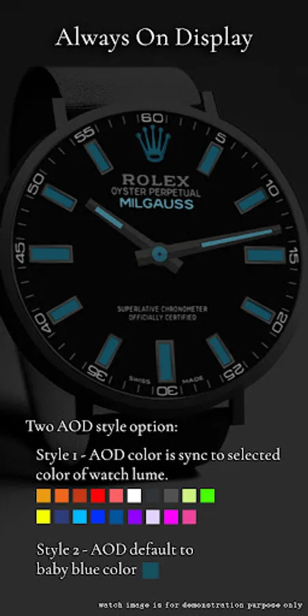 - 2 x Always ON Display style (1)sync with selected colors (2)default to baby blue color