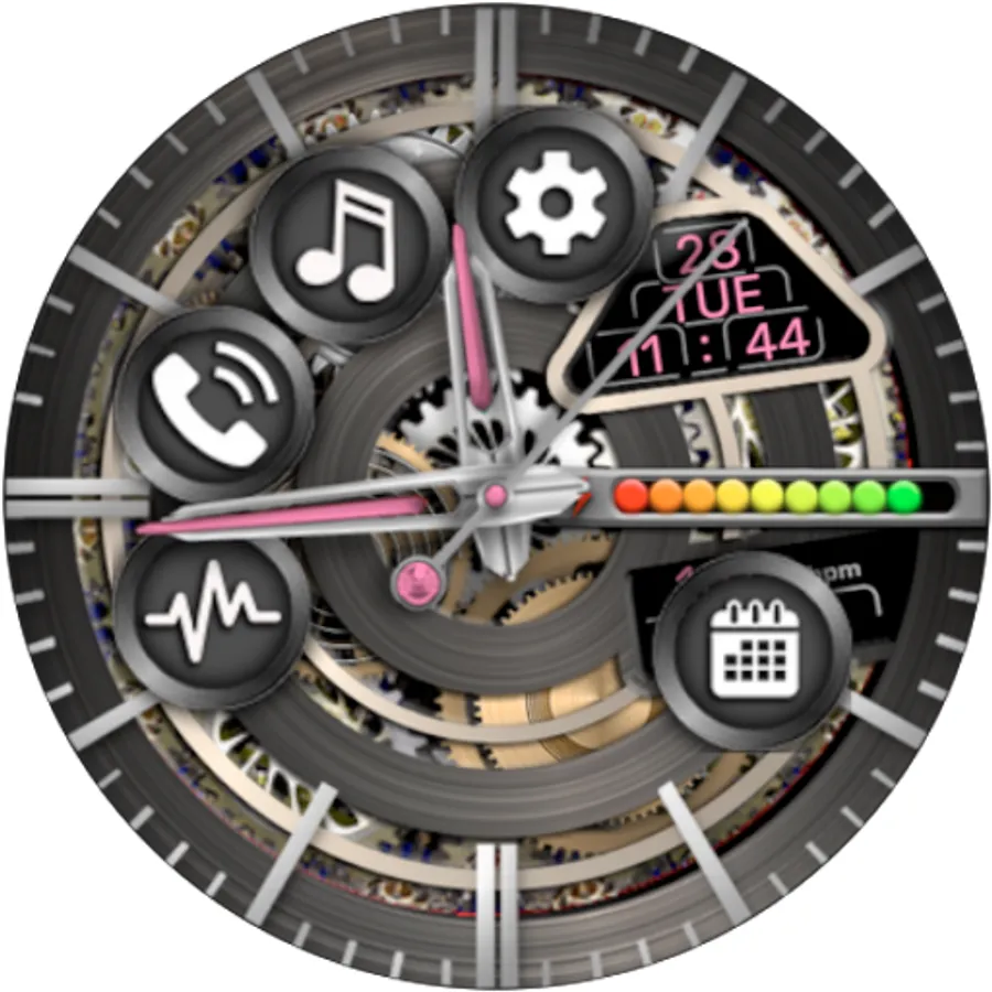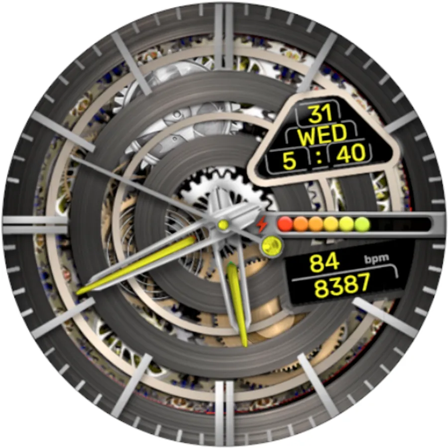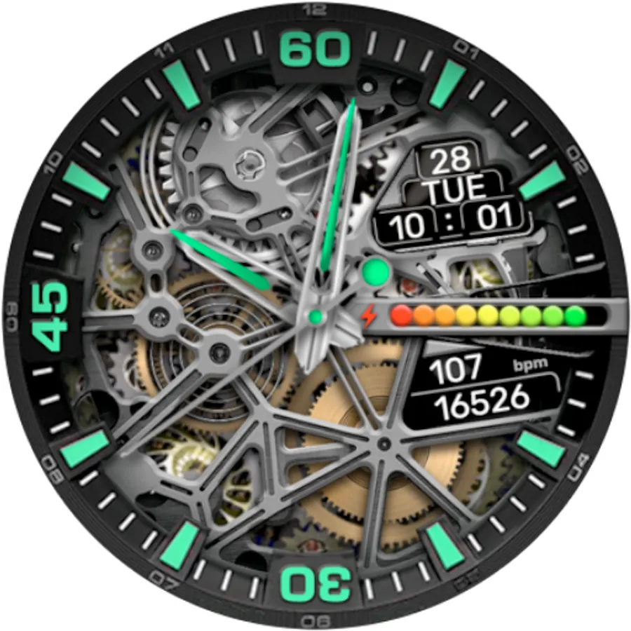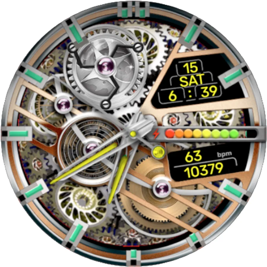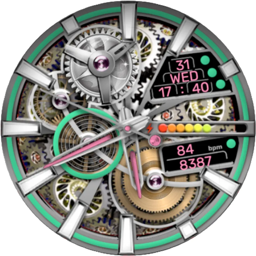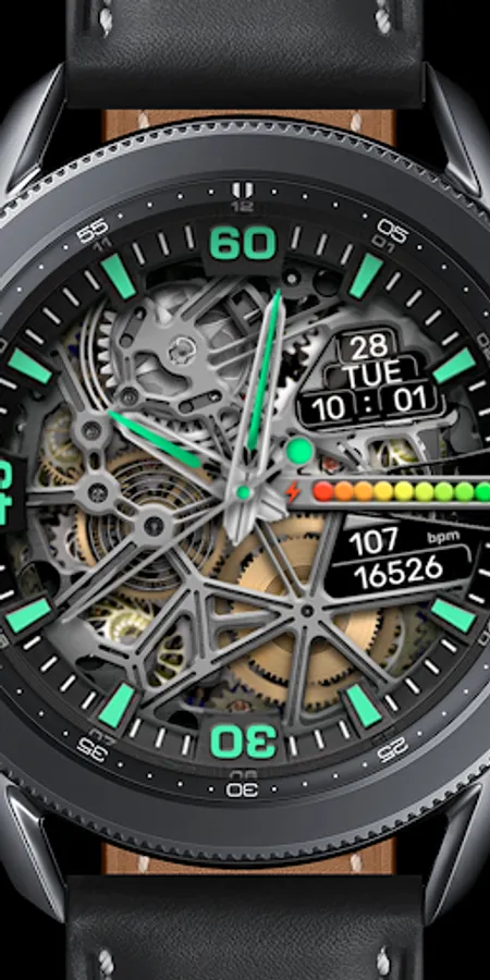 By holding your finger on the screen, you can open the customization menu. Customization allows you to select a different chronograph case and change the color of the hour hands and numerals.