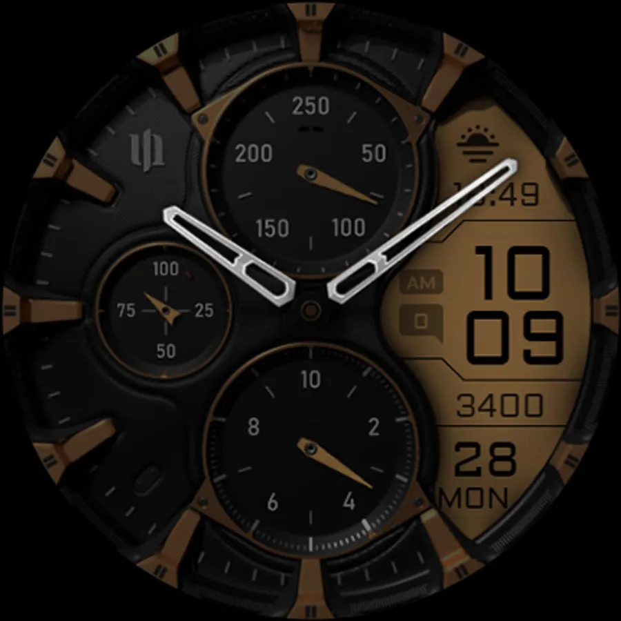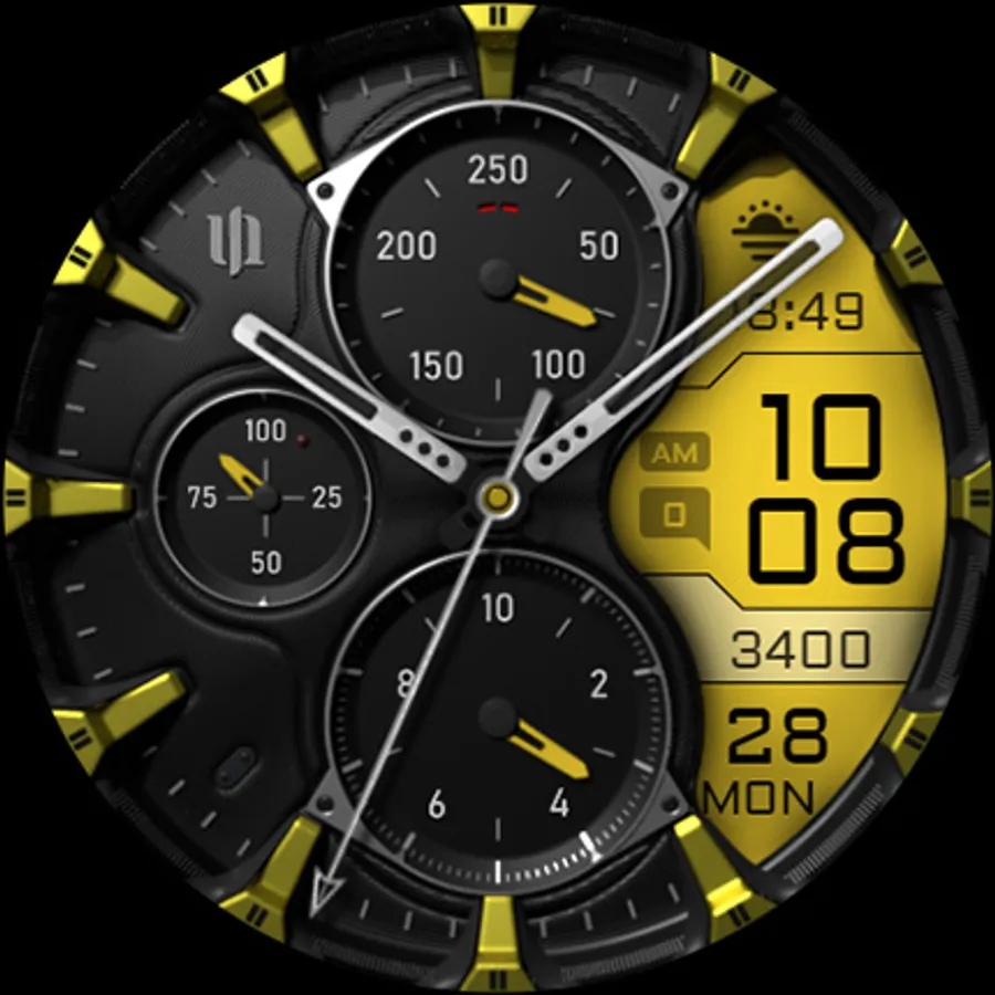 - Watch face displays time, steps, heart rate, day of the week, day of the month, number of unread messages + 2 custom complications