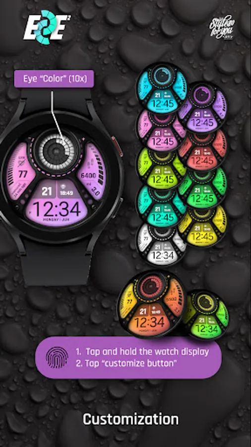 S4U EYE2 is a sporty digital watch face with many color customization options.