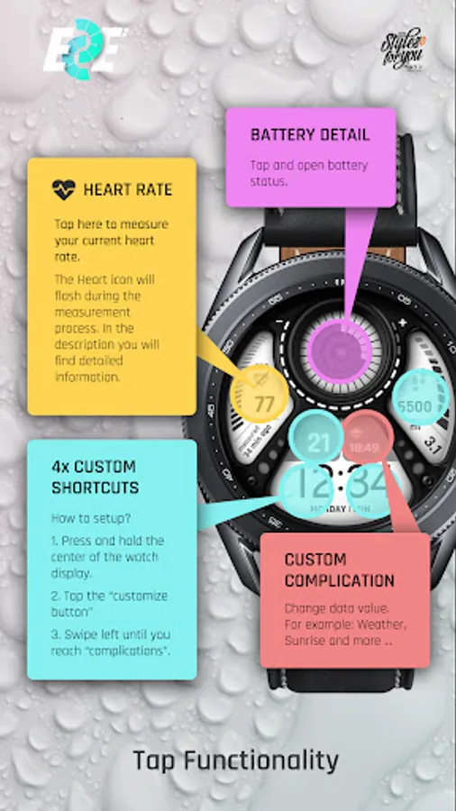 There are a total of 25 colors. You can set up to 4 custom shortcuts to open your favorite watch app with just one click. Furthermore, there is one custom complication with exchangeable information. For more information about the features, check out the gallery.