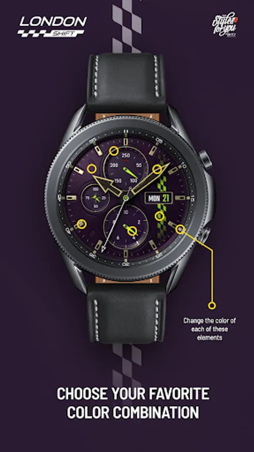 The "S4U London Shift" is the sporty version from the London Watch Face Collection. It is another extremely realistic analog dial. High quality and massive color customization options are the main focus here. The extraordinary 3D effect gives you the feeling of wearing a real watch. Take a look at the gallery to get a good impression.