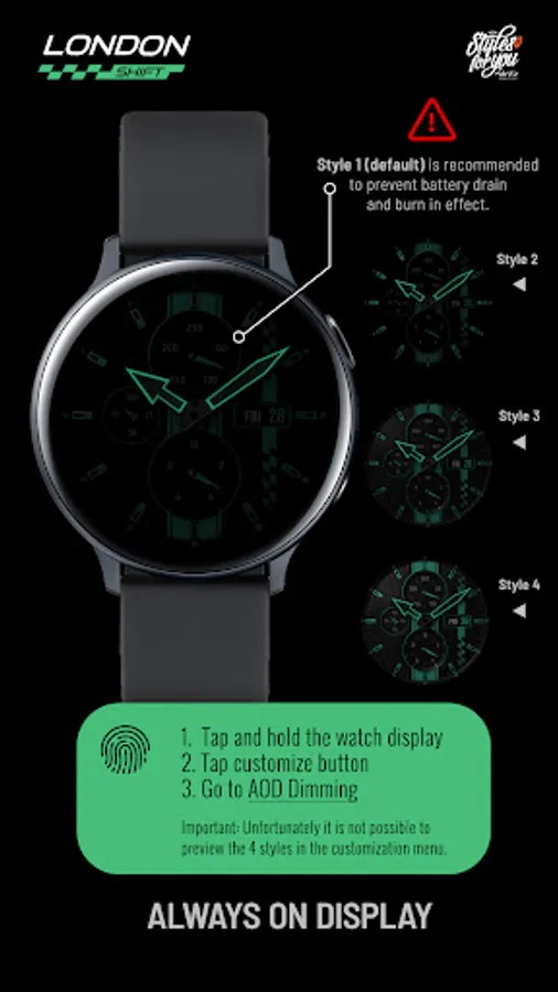*Important: Unfortunately it is not possible to preview the 4 AOD styles in the customization menu.