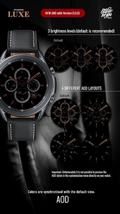 + the watch face has an Always On mode (3 brightness levels and 4 AOD layouts)