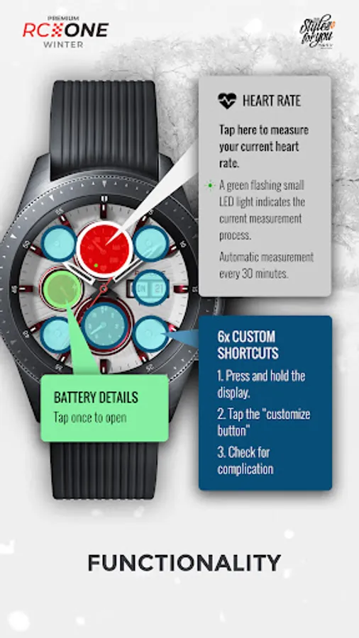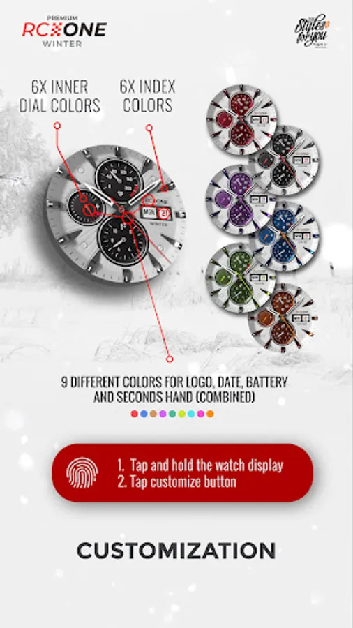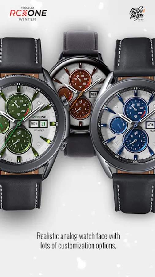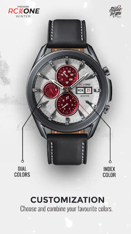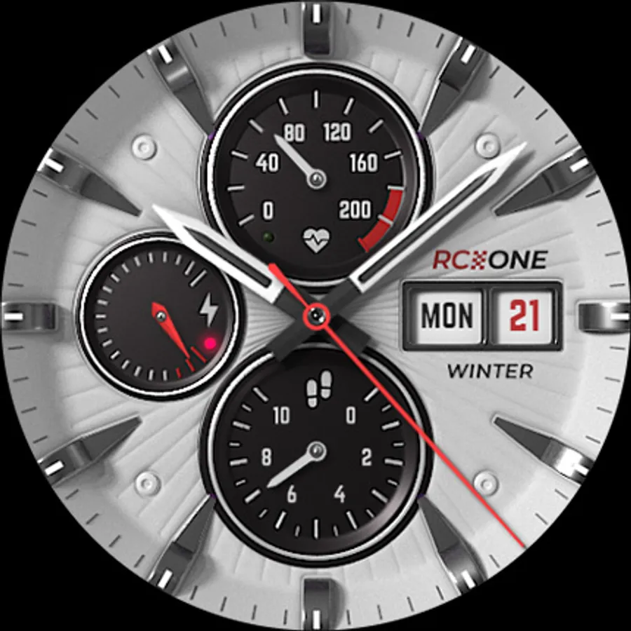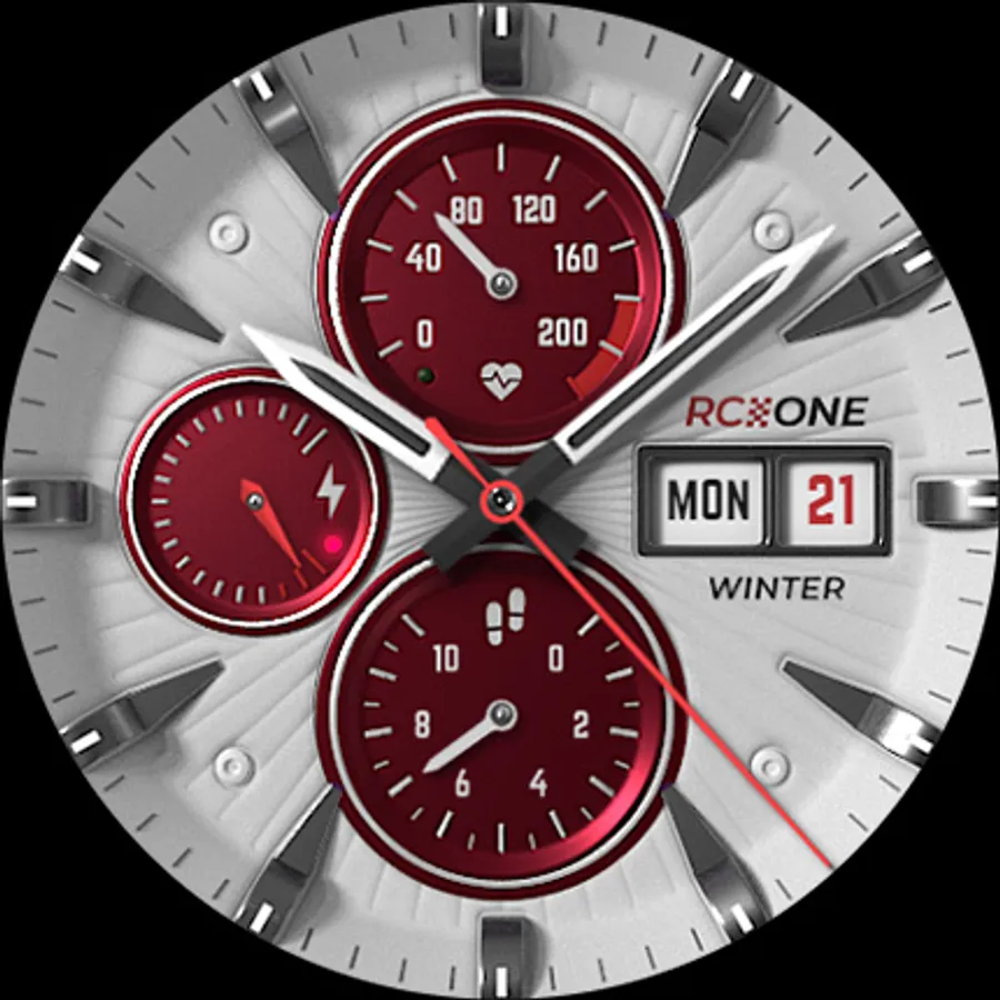 The S4U RC ONE "Winter" is the white version of the RC ONE Standard Edition. It is an super realistic analog dial which is inspired by classic chronographs. The extraordinary 3D effect gives you the feeling of wearing a real watch. You are able to change the color of the inner dials and the index. In addition to that you are able to change the color of the seconds hand in combination with the logo and the battery hand. You can also set up up to 6 custom shortcuts to open your favorite watch app with just one click. Check out the gallery for more information.