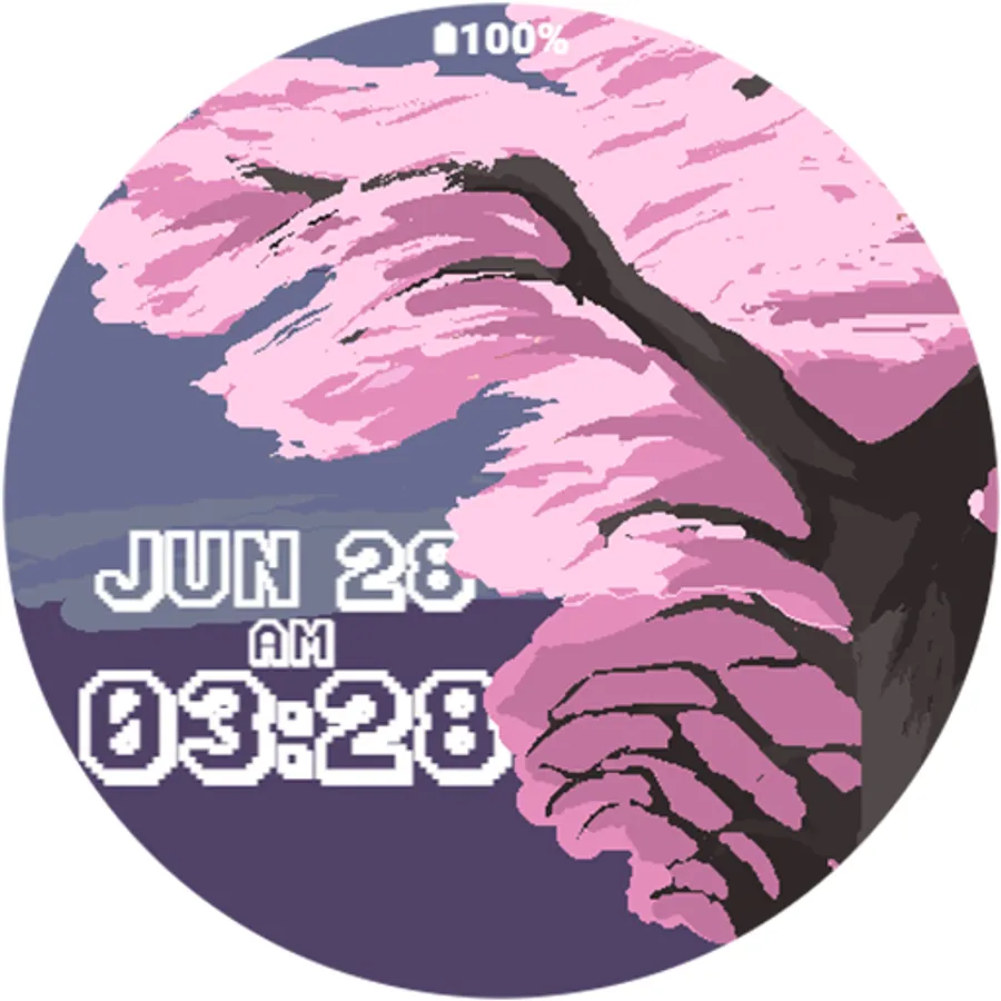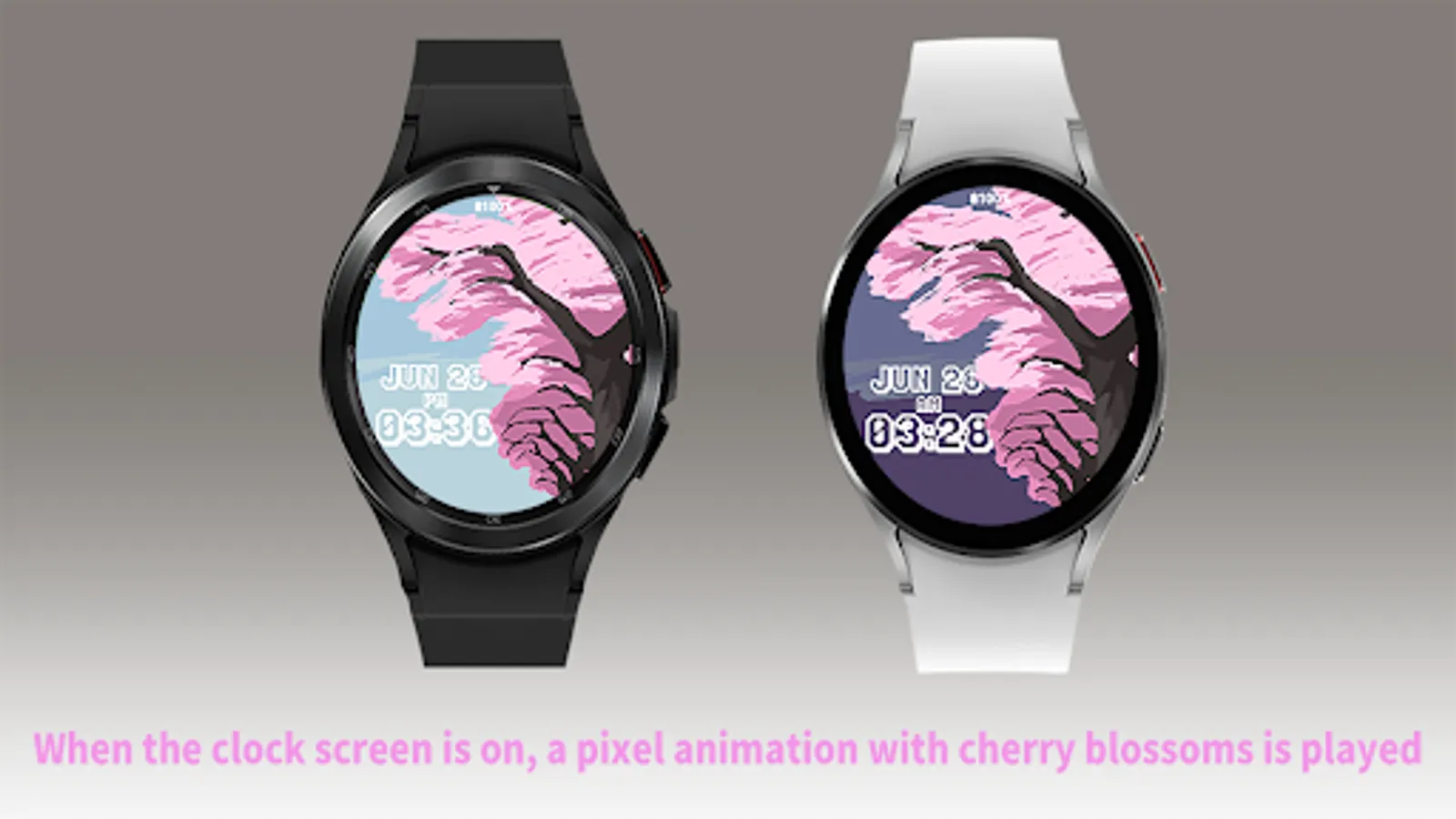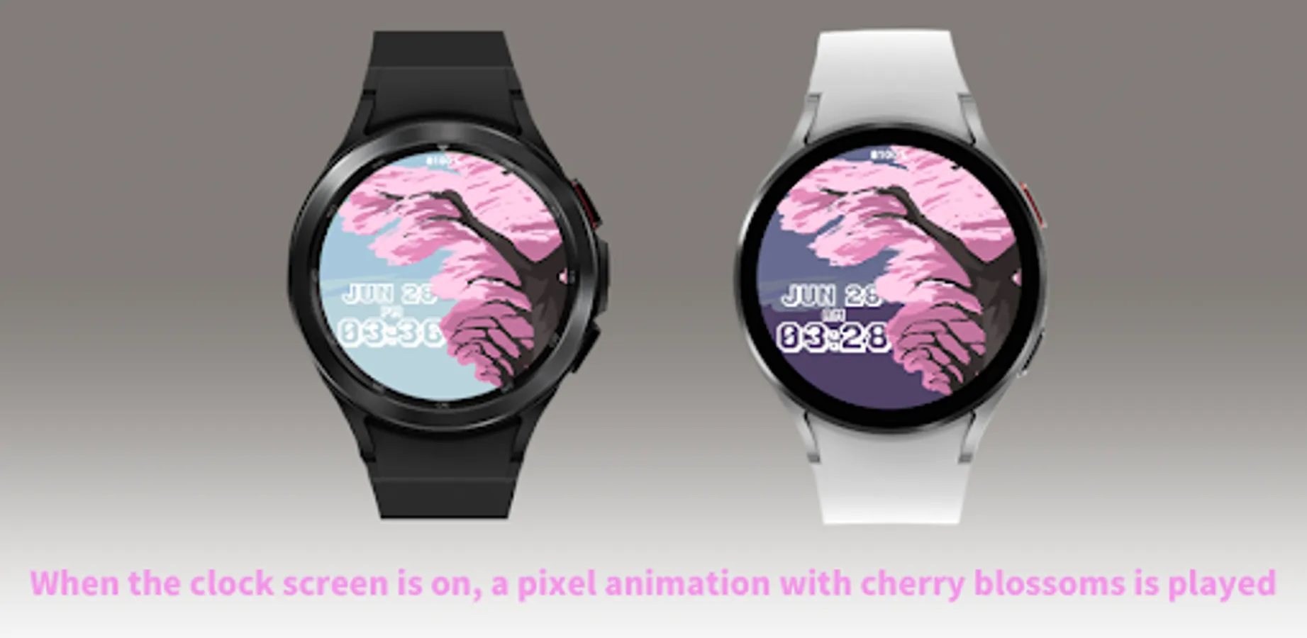 When the clock screen is on, a pixel animation with cherry blossoms is played.