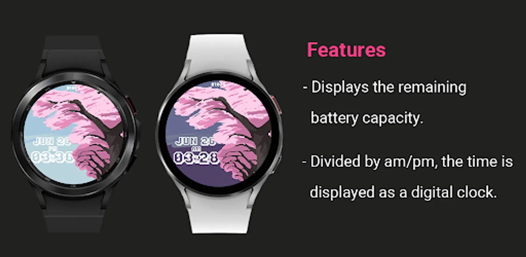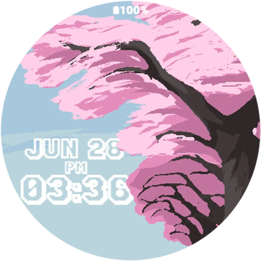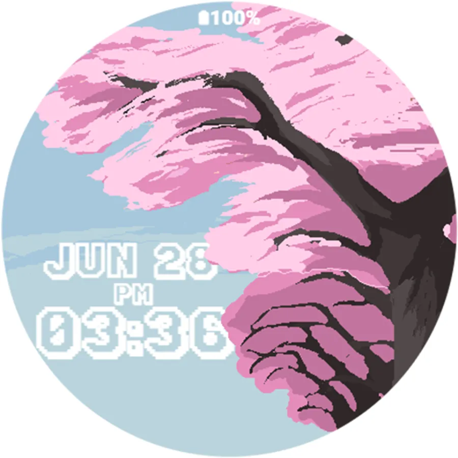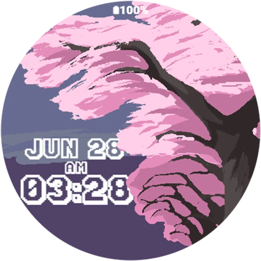 When the clock screen is on, a pixel animation with cherry blossoms is played.