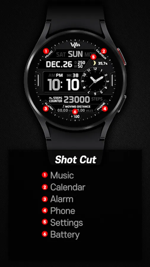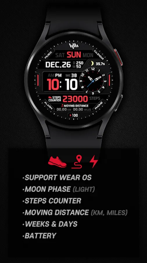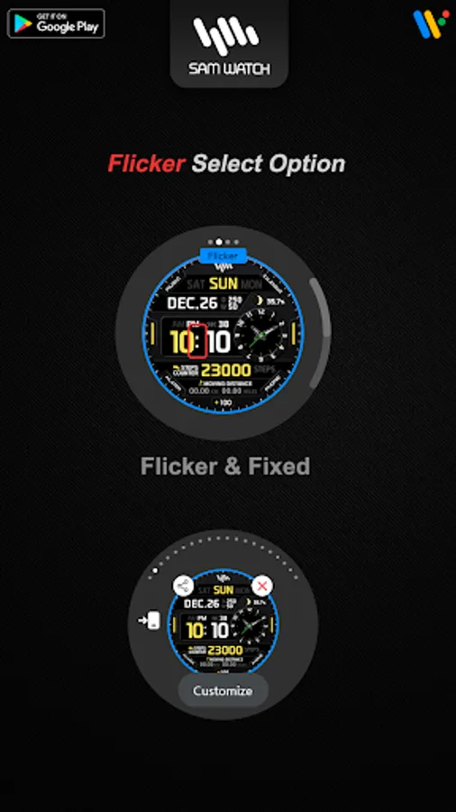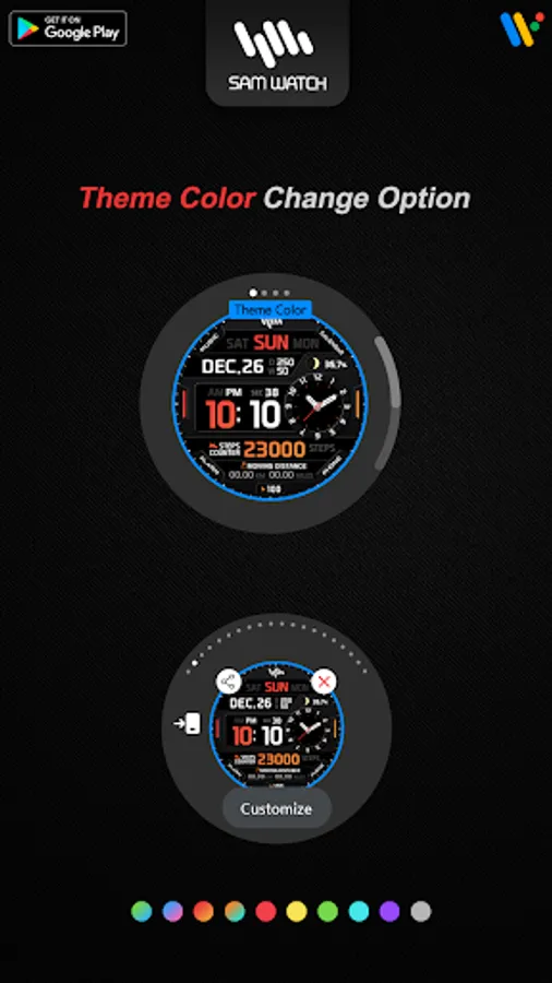 *The smartphone app is an additional app in the Watchface app that explains the download guide. It may be different from the watchface screenshot of the smartphone app and the watchface screenshot that actually downloaded. Most of SamWatch's Watchface app products include apps for smartphones.