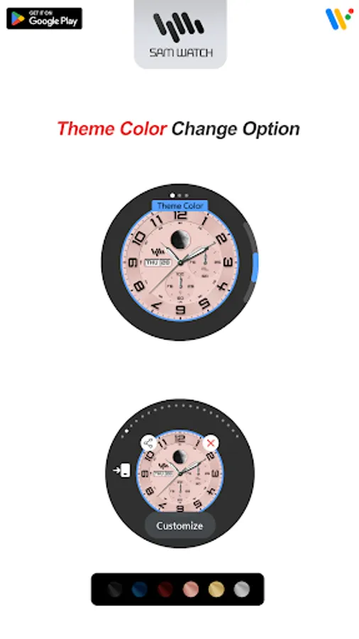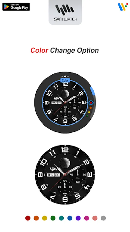 *The smartphone apps are additional apps that support downloading apps on Watchface devices. It may be different from the watchface screenshot of the smartphone app and the watchface screenshot that actually downloaded. Most of SamWatch’s Watchface app products include apps for smartphones.