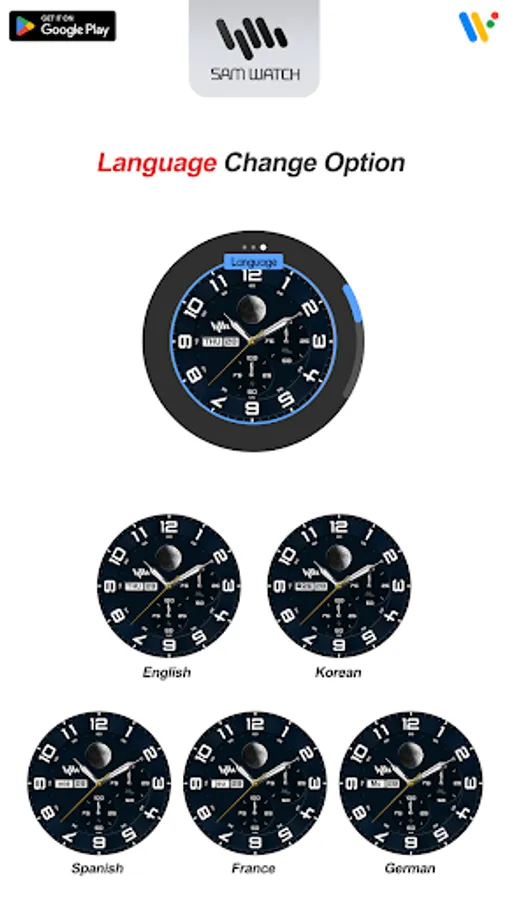 You can distinguish languages by the brand name of SamWatch.