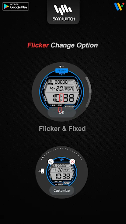 *The smartphone app is an additional app in the Watchface app that explains the download guide. It may be different from the watchface screenshot of the smartphone app and the watchface screenshot that actually downloaded. Most of SamWatch's Watchface app products include apps for smartphones.