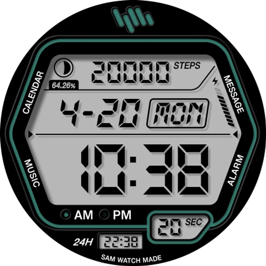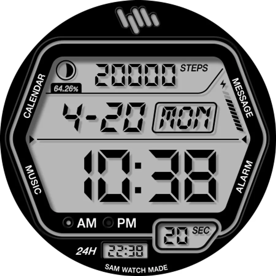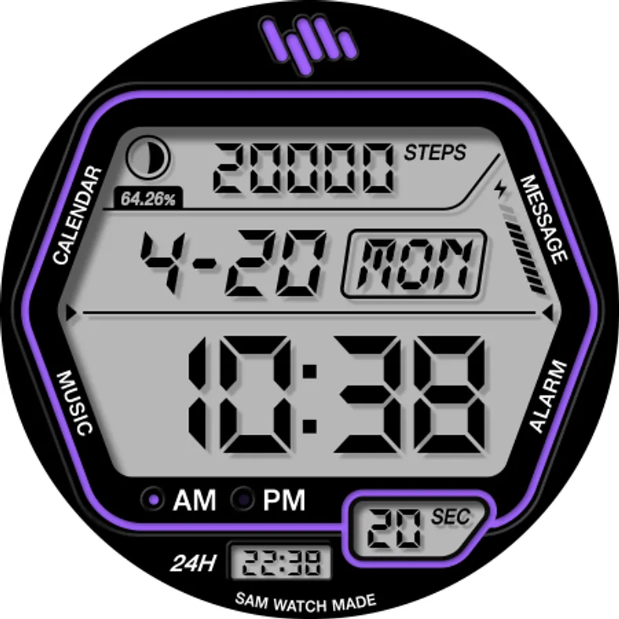 This watch face corresponds to the SamWatch Digital lineup.