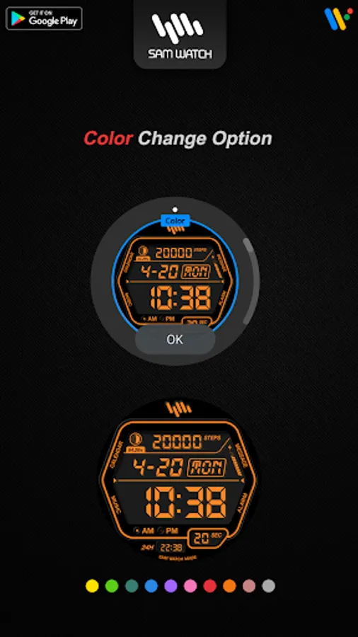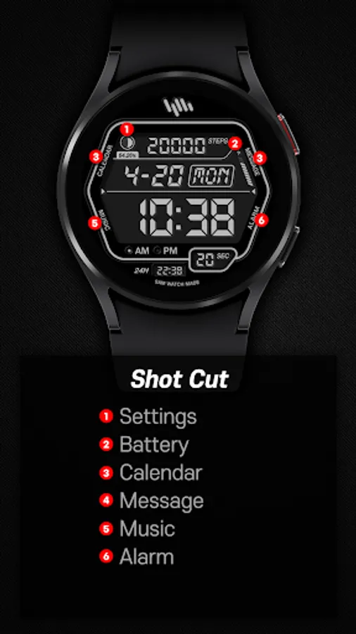 *The smartphone app is an additional app in the Watchface app that explains the download guide. It may be different from the watchface screenshot of the smartphone app and the watchface screenshot that actually downloaded. Most of SamWatch's Watchface app products include apps for smartphones.