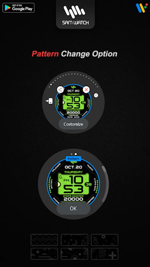 *The smartphone app is an additional app in the Watchface app that explains the download guide. It may be different from the watchface screenshot of the smartphone app and the watchface screenshot that actually downloaded. Most of SamWatch's Watchface app products include apps for smartphones.