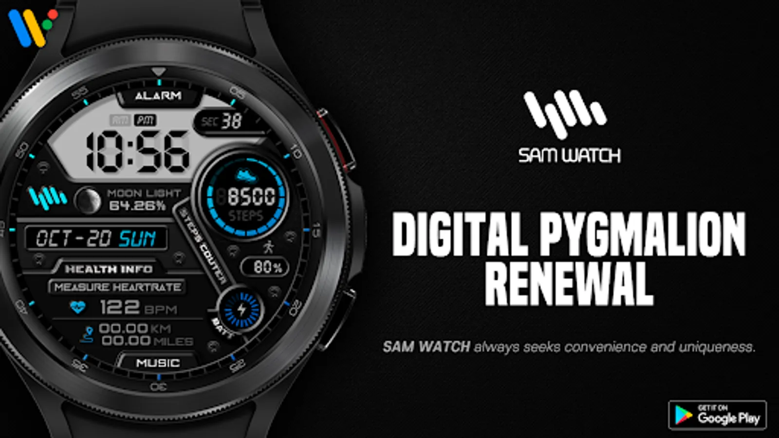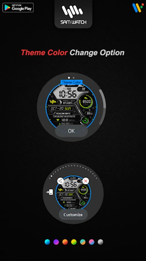 *The smartphone app is an additional app in the Watchface app that explains the download guide. It may be different from the watchface screenshot of the smartphone app and the watchface screenshot that actually downloaded. Most of SamWatch's Watchface app products include apps for smartphones.