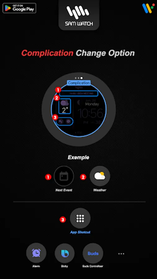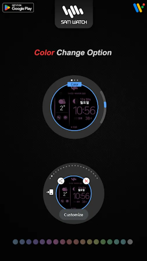 *The smartphone app is an additional app in the Watchface app that explains the download guide. It may be different from the watchface screenshot of the smartphone app and the watchface screenshot that actually downloaded. Most of SamWatch's Watchface app products include apps for smartphones.