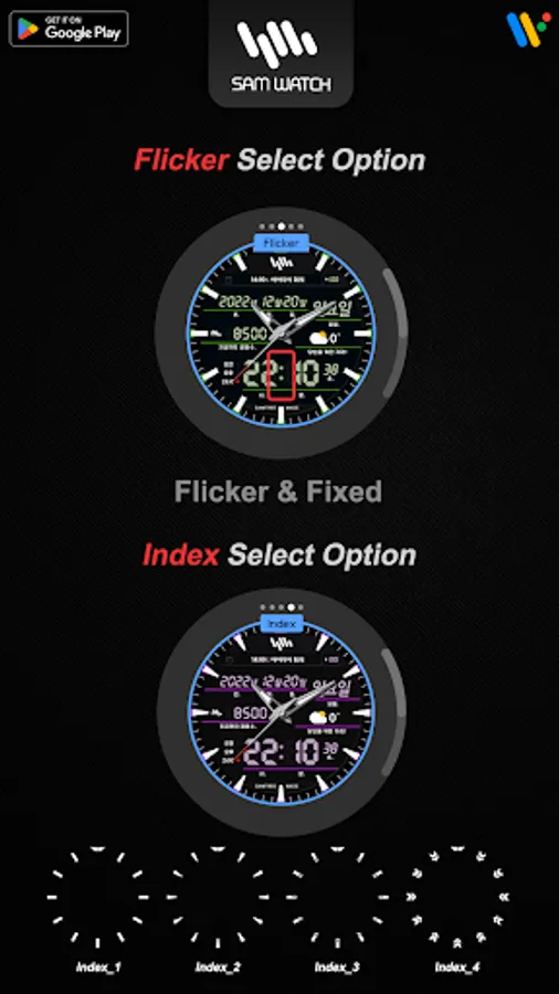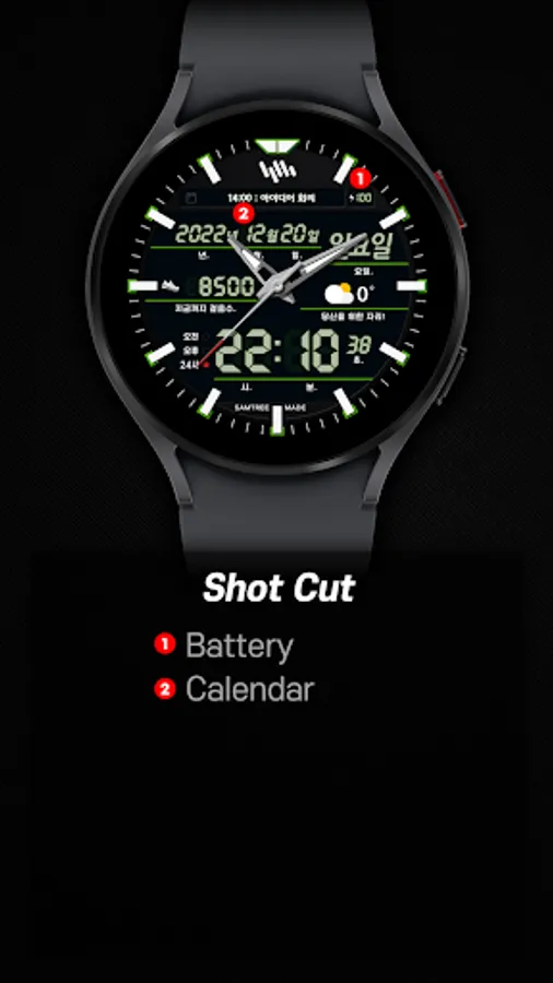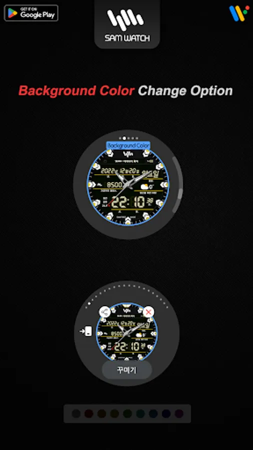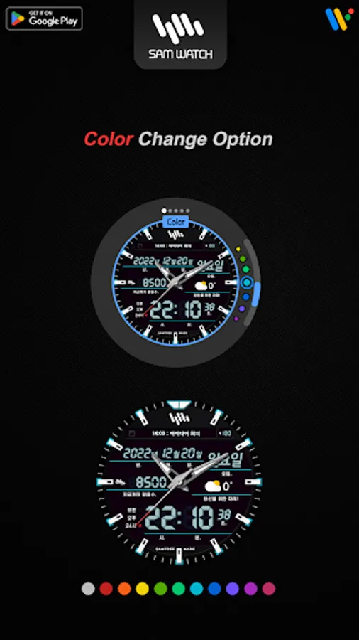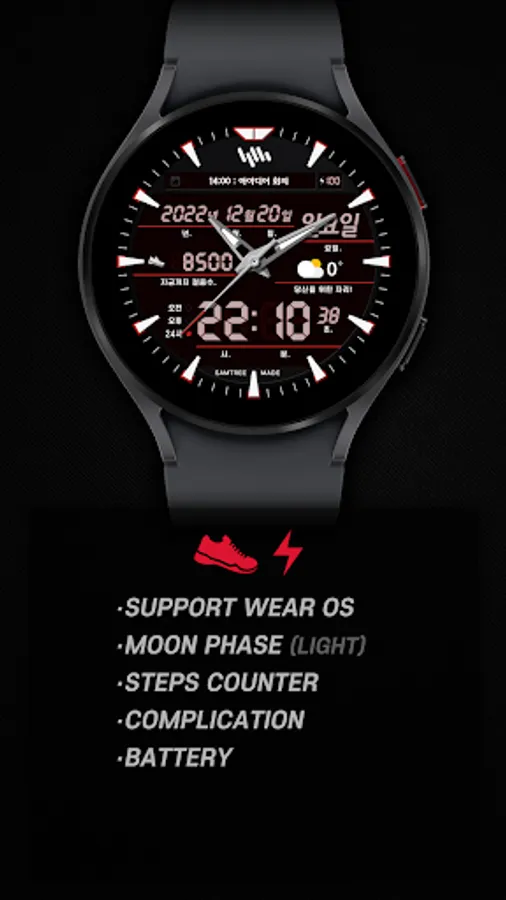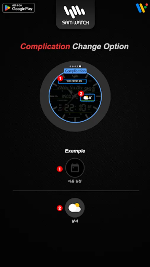*The smartphone app is an additional app in the Watchface app that explains the download guide. It may be different from the watchface screenshot of the smartphone app and the watchface screenshot that actually downloaded. Most of SamWatch's Watchface app products include apps for smartphones.
