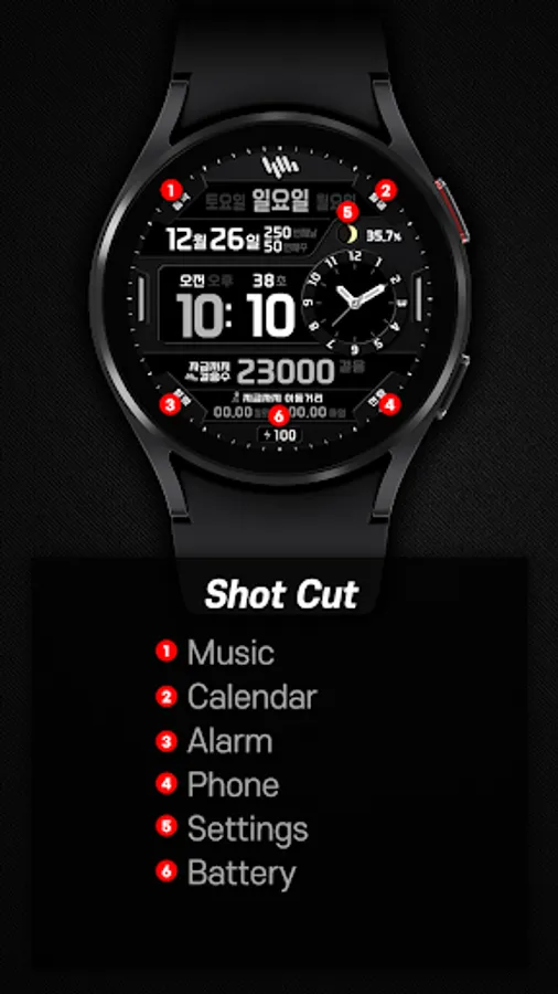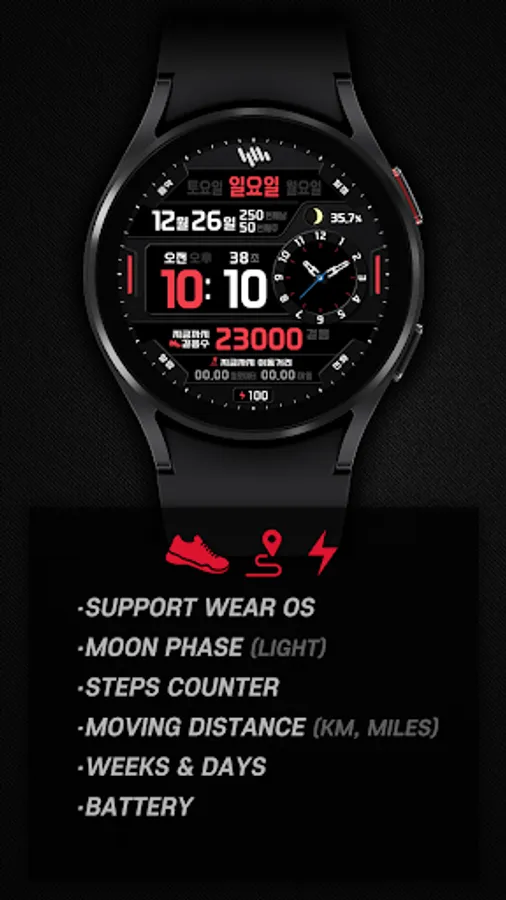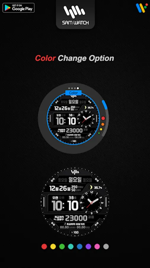 *The smartphone app is an additional app in the Watchface app that explains the download guide. It may be different from the watchface screenshot of the smartphone app and the watchface screenshot that actually downloaded. Most of SamWatch's Watchface app products include apps for smartphones.