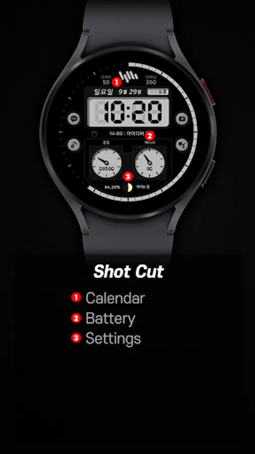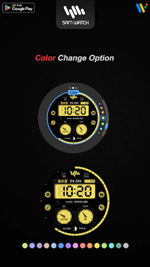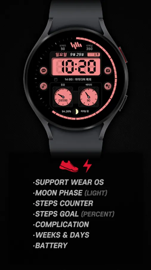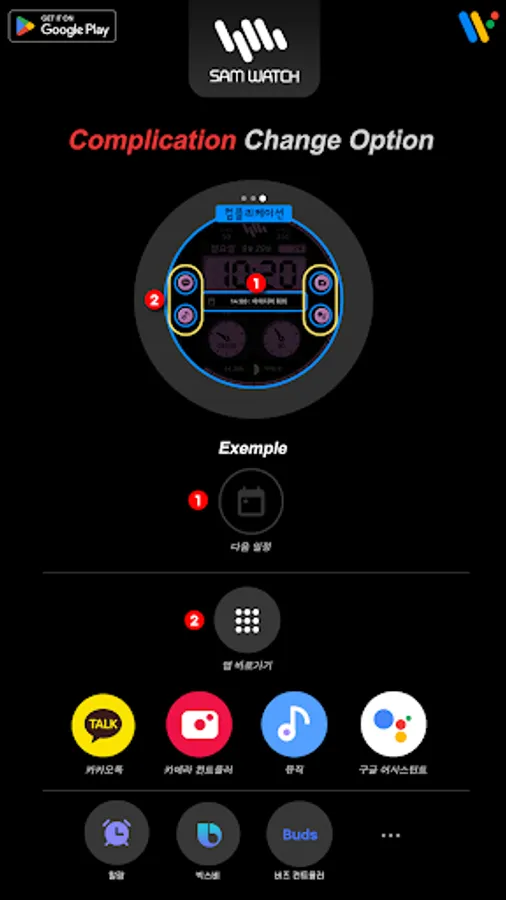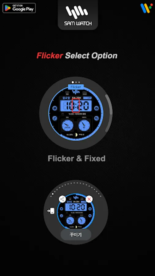 *The smartphone app is an additional app in the Watchface app that explains the download guide. It may be different from the watchface screenshot of the smartphone app and the watchface screenshot that actually downloaded. Most of SamWatch's Watchface app products include apps for smartphones.