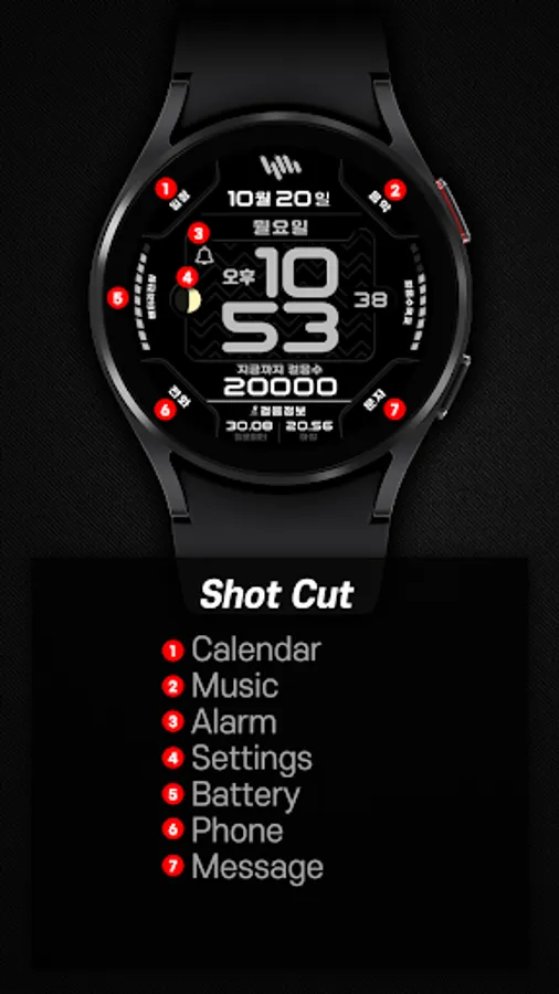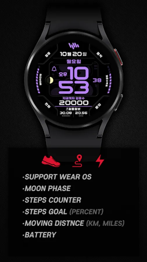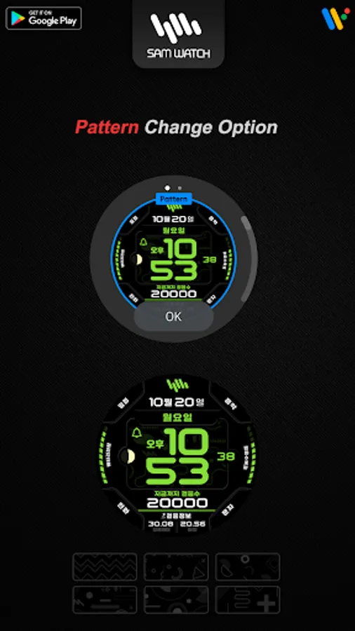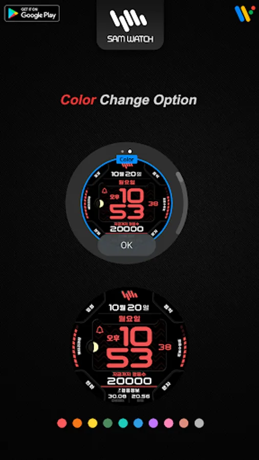 *The smartphone app is an additional app in the Watchface app that explains the download guide. It may be different from the watchface screenshot of the smartphone app and the watchface screenshot that actually downloaded. Most of SamWatch's Watchface app products include apps for smartphones.