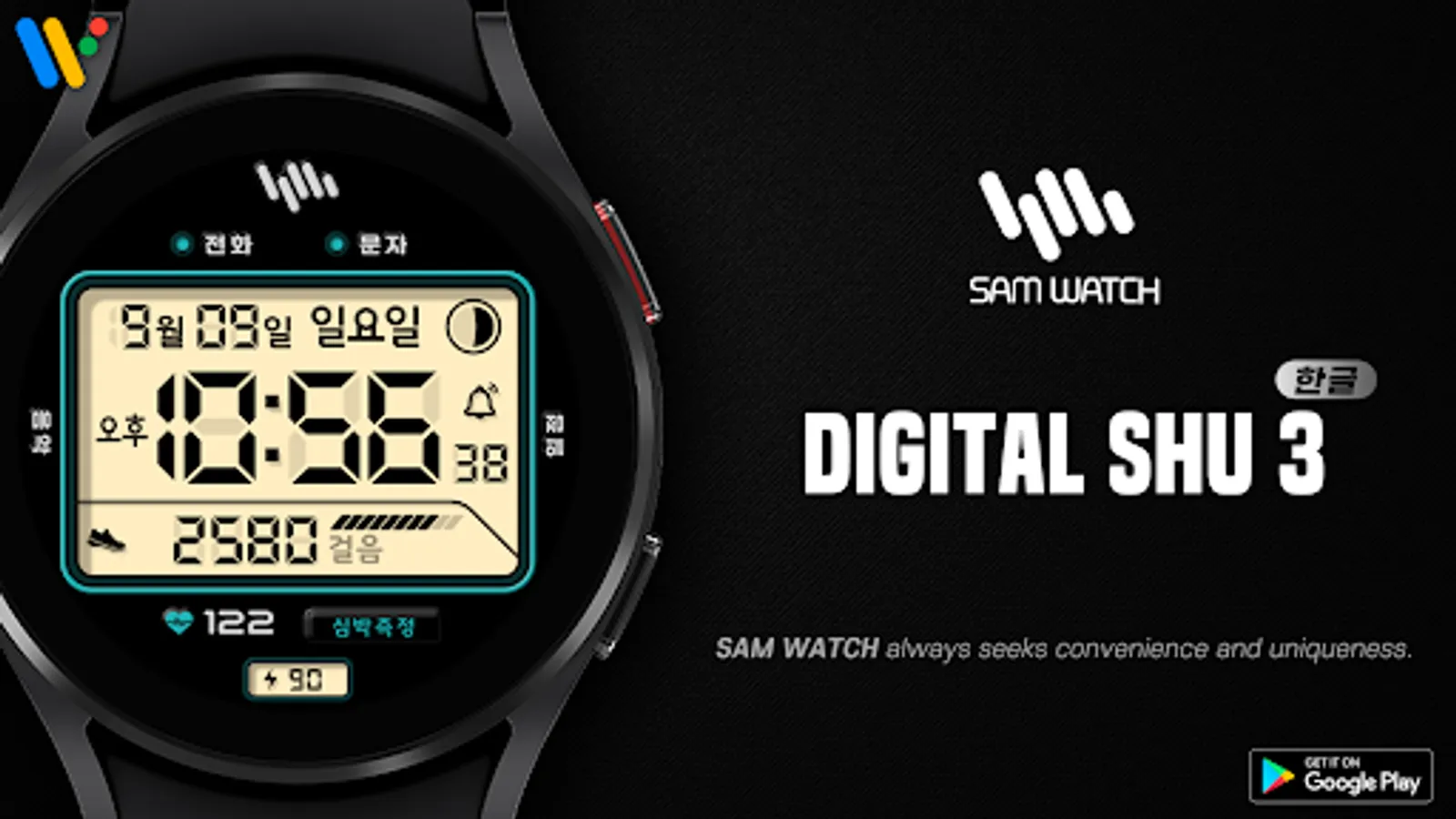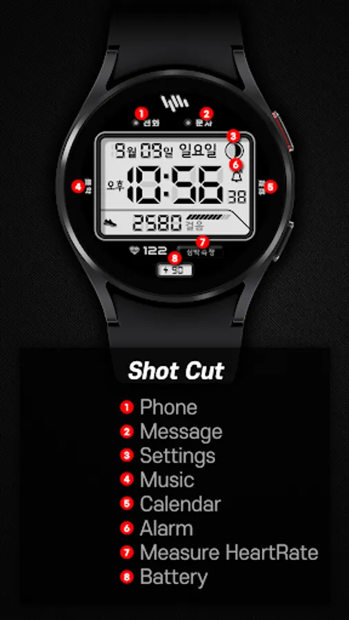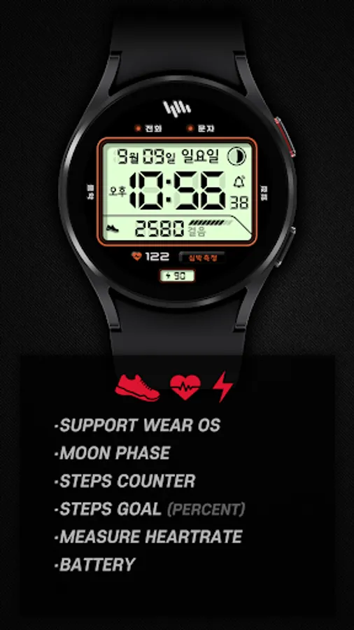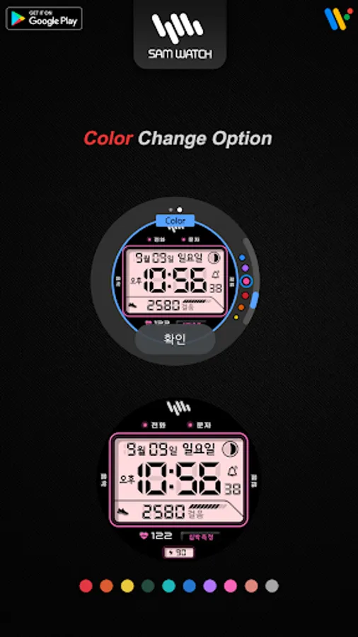 *The smartphone app is an additional app in the Watchface app that explains the download guide. It may be different from the watchface screenshot of the smartphone app and the watchface screenshot that actually downloaded. Most of SamWatch's Watchface app products include apps for smartphones.