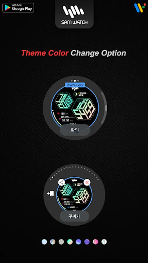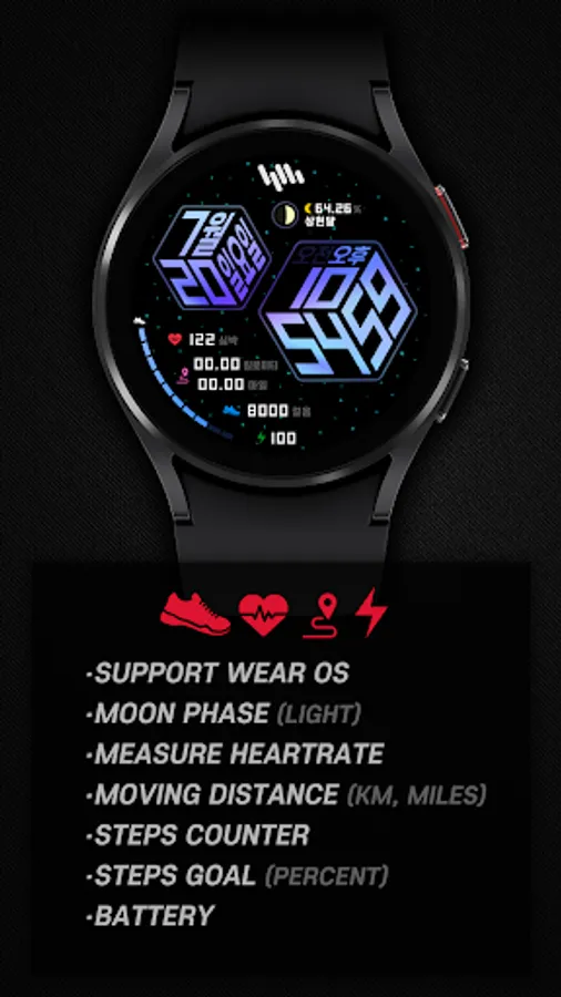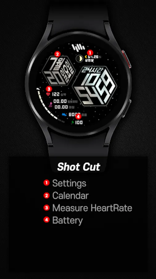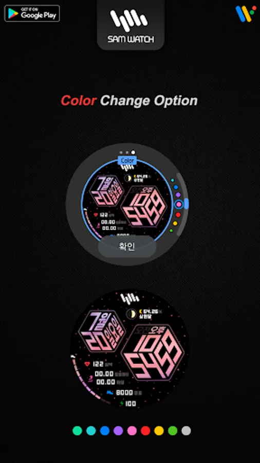 *The smartphone app is an additional app in the Watchface app that explains the download guide. It may be different from the watchface screenshot of the smartphone app and the watchface screenshot that actually downloaded. Most of SamWatch's Watchface app products include apps for smartphones.