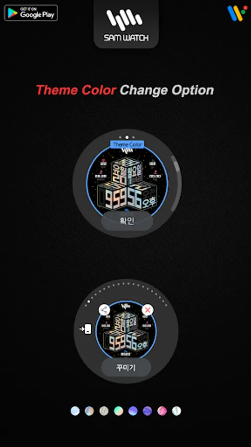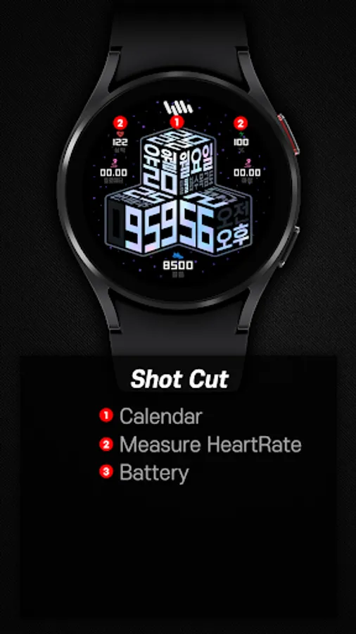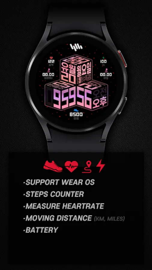 *The smartphone app is an additional app in the Watchface app that explains the download guide. It may be different from the watchface screenshot of the smartphone app and the watchface screenshot that actually downloaded. Most of SamWatch's Watchface app products include apps for smartphones.
