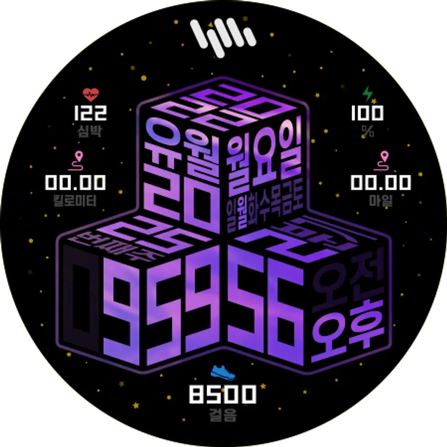 This watch face corresponds to the SamWatch CUBE Space lineup.