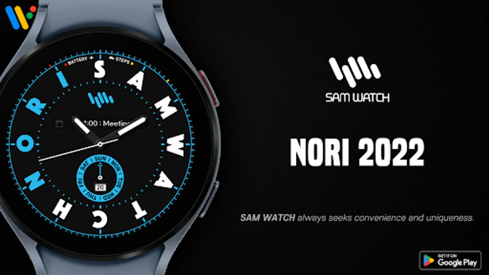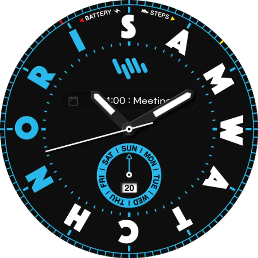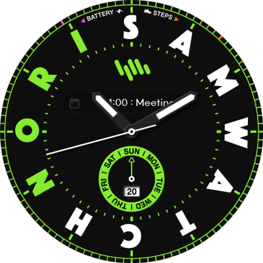 This watch face corresponds to the SamWatch Nori lineup.